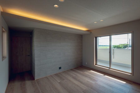 南に大きく間口を取り、日当たり良好なLDKを計画しました。2階の3室も全て南向きのため、家のどこにいても暖かい日差しを受けることができます。またLDKと続き間の和室は置き畳仕様となっており、様々なシーンで活用可能です。