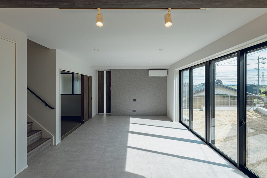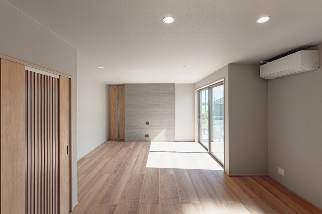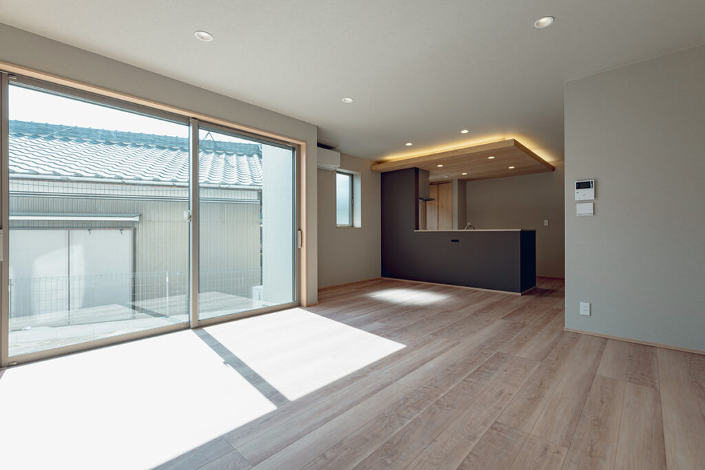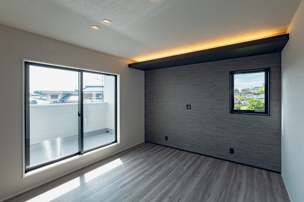 内装のクロスでアクセントをつけたおしゃれなLDK・洋室