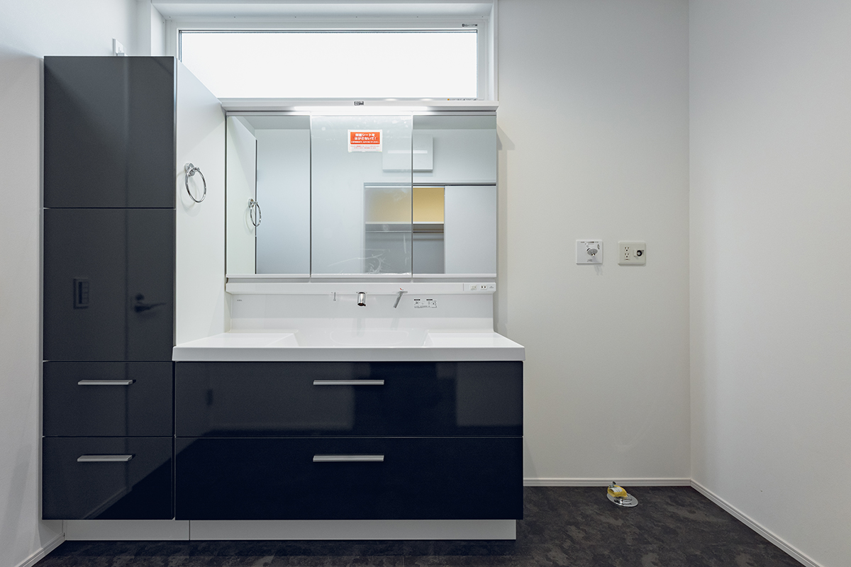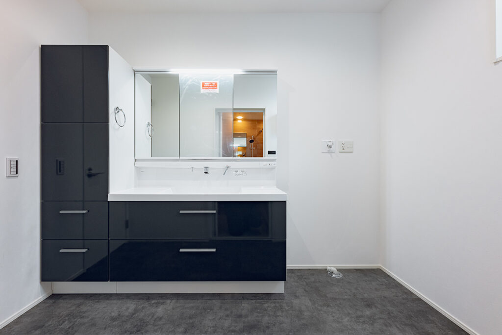 大容量の収納も完備した広々とした洗面化粧台