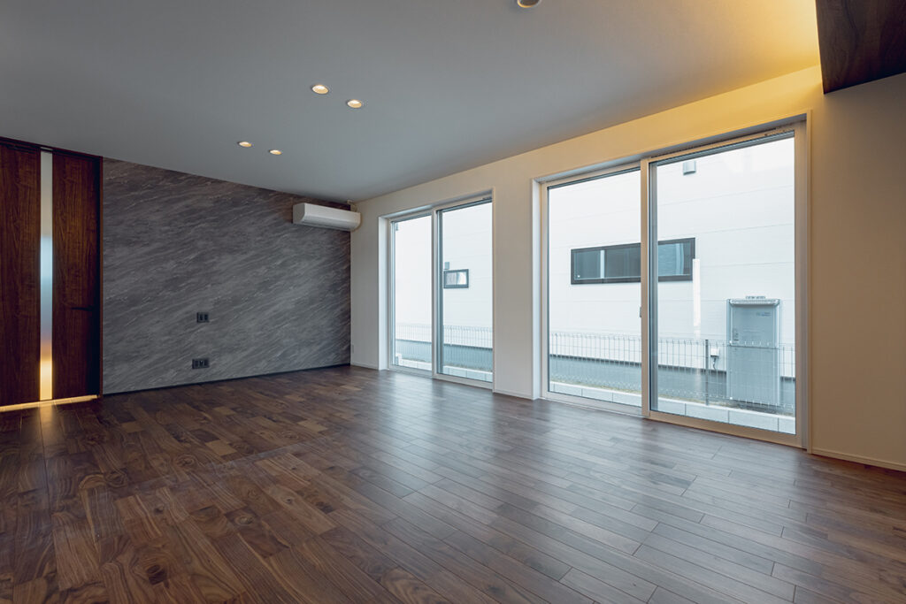 内装のクロスでアクセントをつけたおしゃれなLDK・洋室