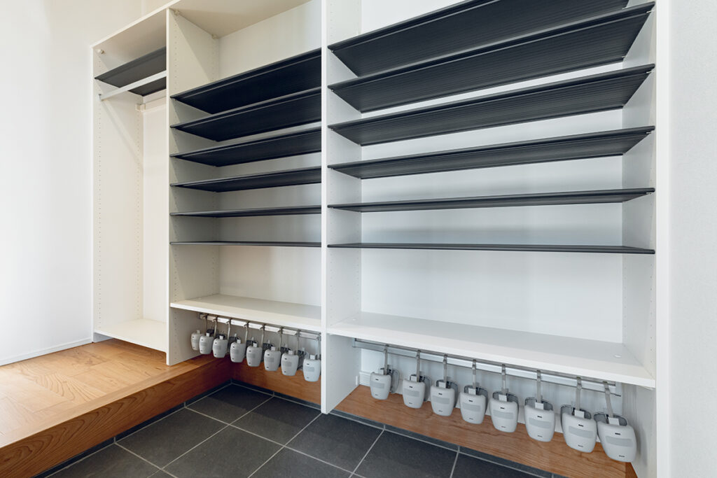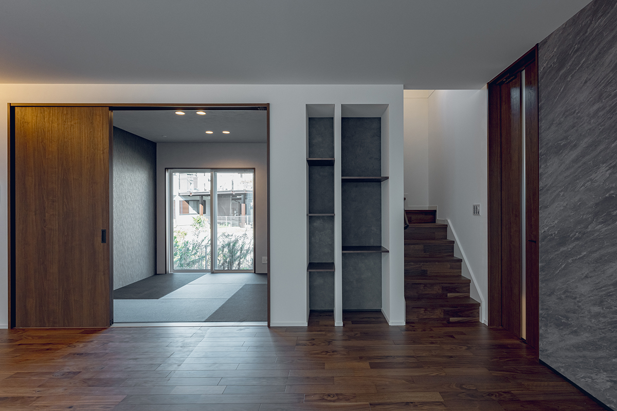 1階に計画したファミリークローゼットは、普段使いの衣服を収納するのに便利。水廻りとも近いため、洗濯を終えた衣服を収納しやすくなっています。またLDKに続いている和室は、家事室や子どもの遊び場として活用できます。