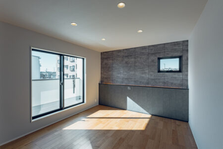 「家族団らんを楽しむ家」は、LDKと続き間の和室や、リビングの一角に計画したスタディコーナーなど、家族との繋がりを感じさせてくれる間取りを計画しました。リビングのどこにいてもお互いの気配を感じられるため、家族団らんの時間を楽しめます。