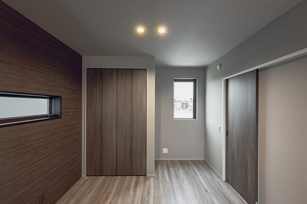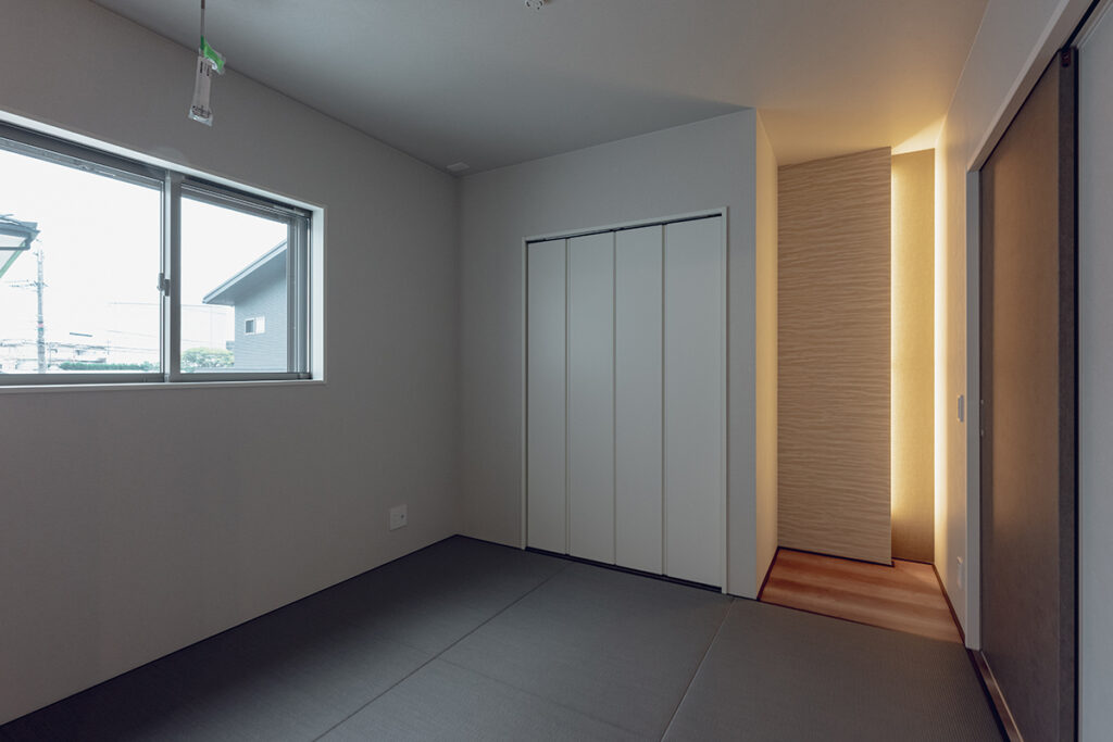 水廻りの近くに、子どもの遊び場や家事室として利用できる和室を計画しました。LDKと続き間になっており、建具を開くことでLDKをより開放的な空間へと変化させることができます。