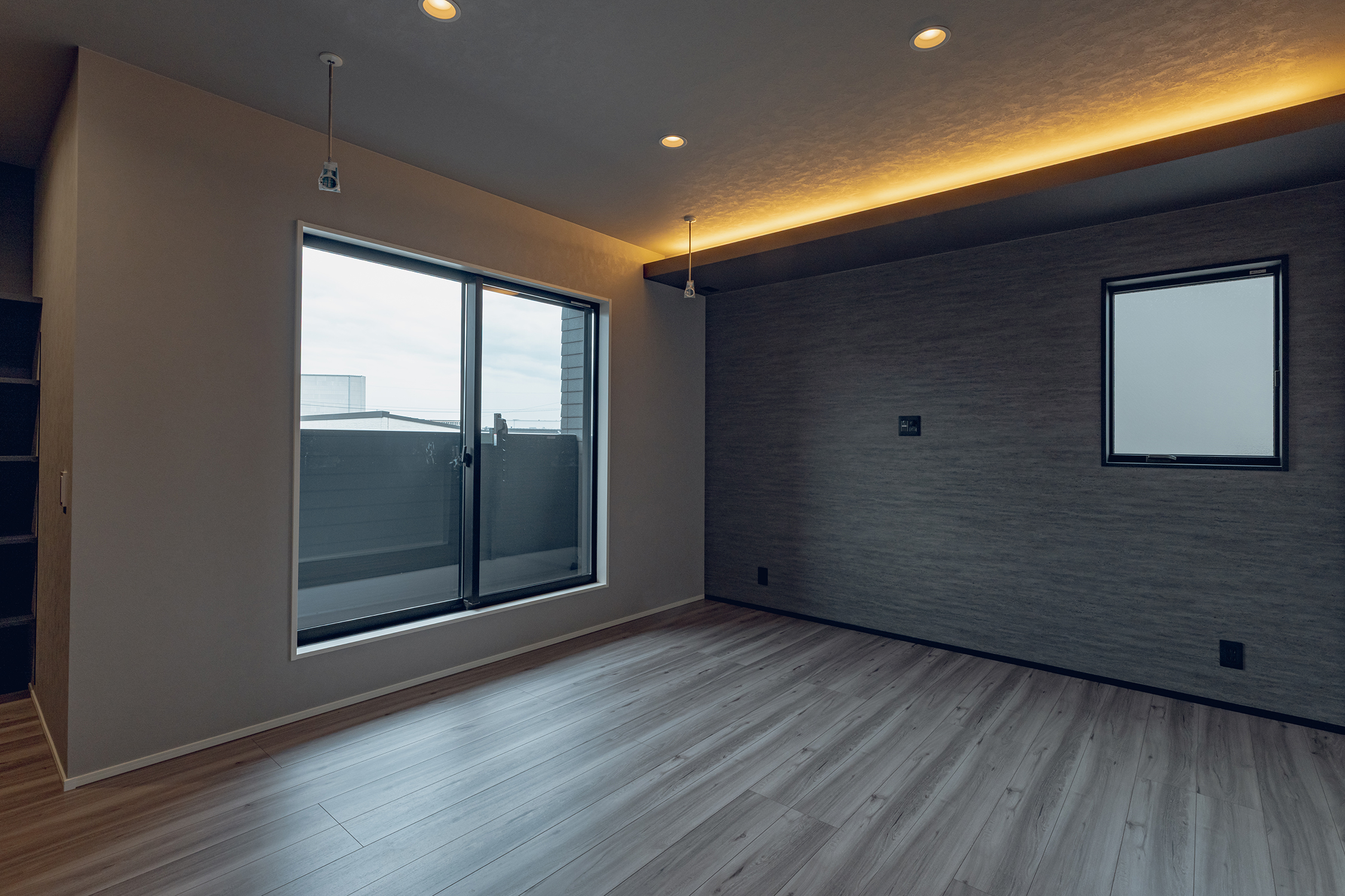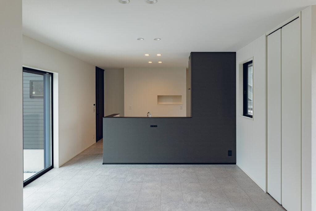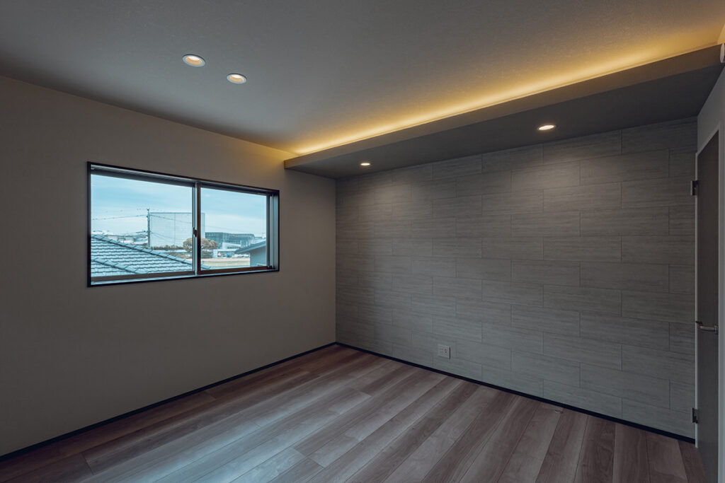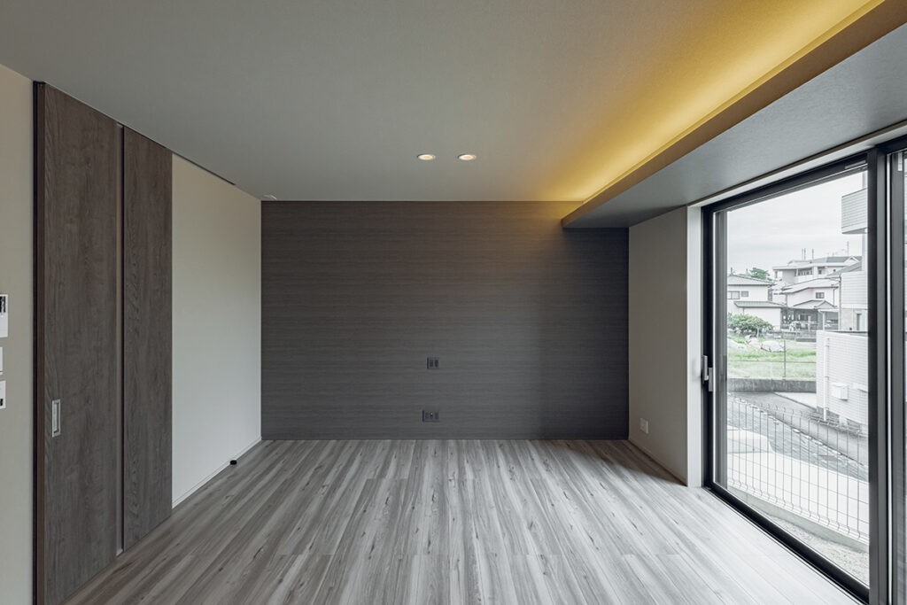 内装のクロスでアクセントをつけたおしゃれなLDK・洋室