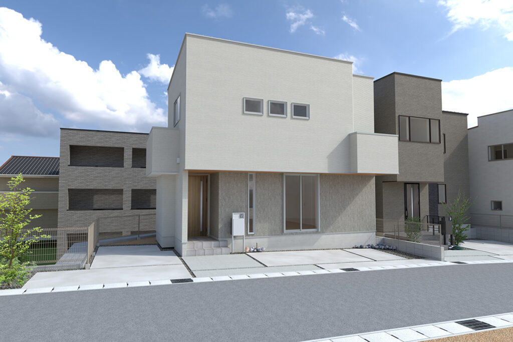 名鉄名古屋本線「牛田」駅まで徒歩約16分。保育園や小学校が近く、緑豊かな公園も近隣に揃った子育て家族に嬉しい住環境です。AREXの建築家がデザインしたコンセプトハウス4邸、ただいま建築中です。