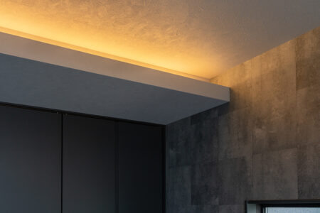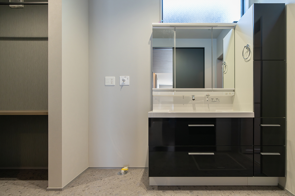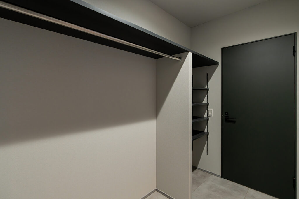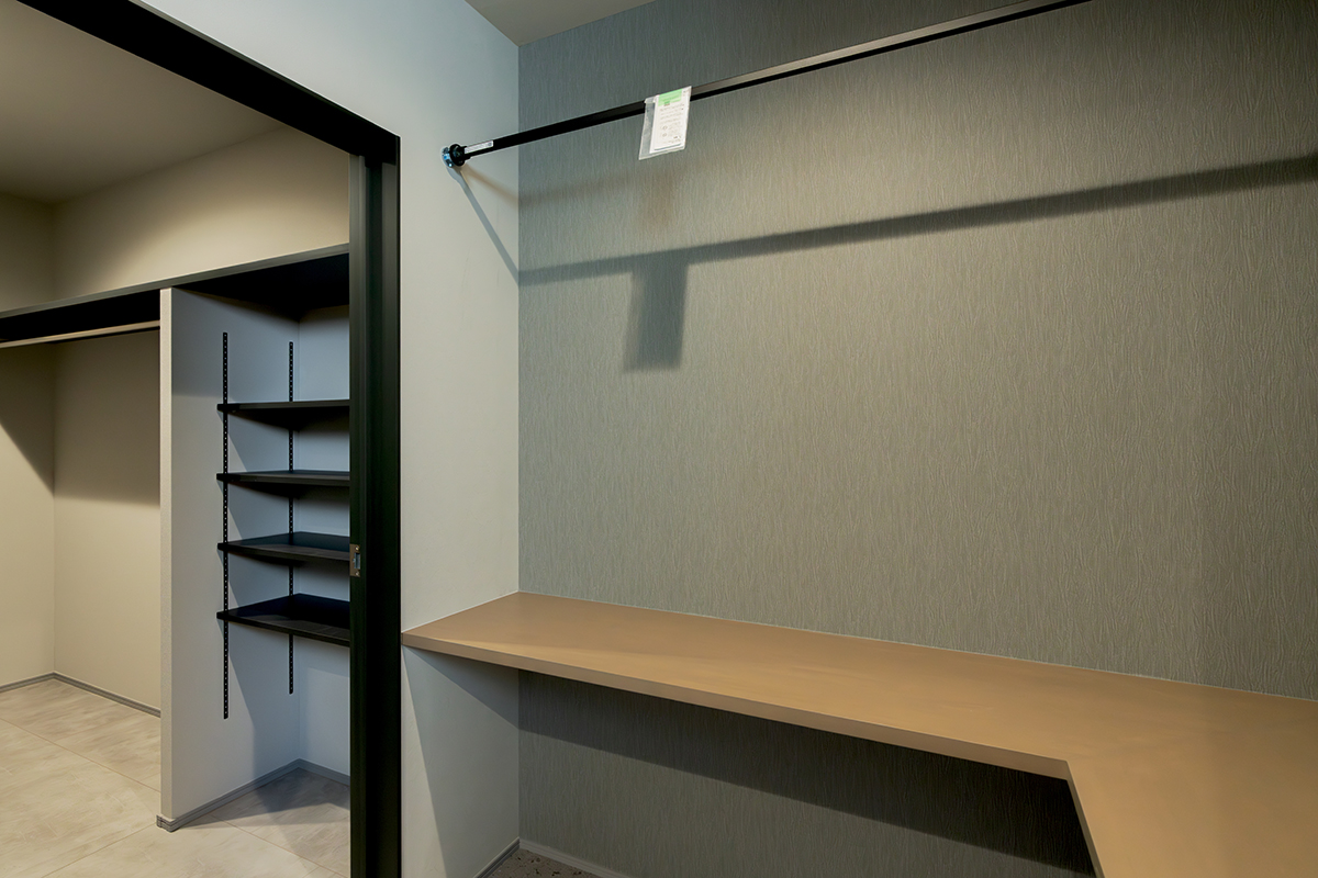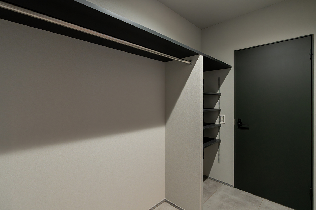 1階の洗面室兼ランドリーとキッチンに隣接するように、ファミリークローゼットを計画しました。たっぷりと収納できるだけでなく、乾かした洗濯物をスムーズに収納できる便利な動線となっています。
