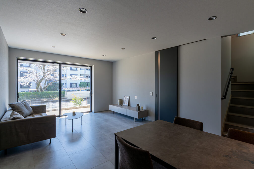 「広がりのある家」のLDKにつながる和室は置き畳になっており、取り外すことで広がりのあるリビングを演出することが可能。またLDKと和室には、南からの陽の光が注ぐ設計になっているため、明るく開放的な暮らしを楽しめます。