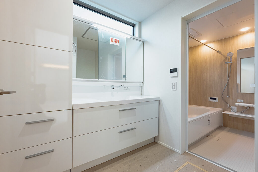 大容量の収納も完備した広々とした洗面化粧台