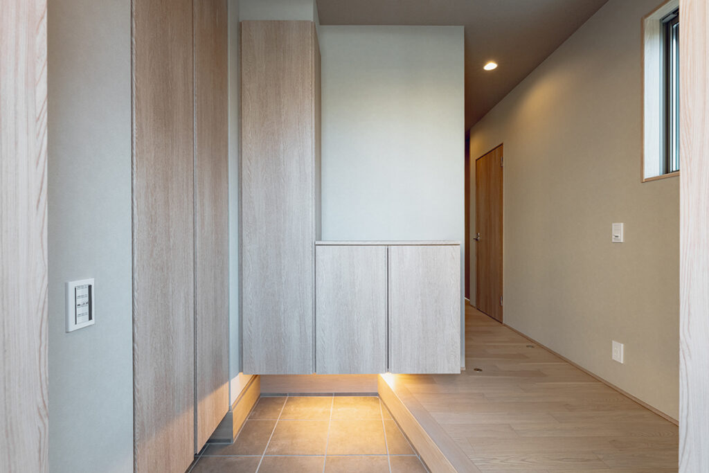 玄関や洗面室から近いファミリークローゼットは、動線が短いため衣類や日用品の収納など幅広く使えて便利です。またリビングから小上がりになっている窓際のヌックスペースは、読書やリラックスタイムに最適な空間となっています。