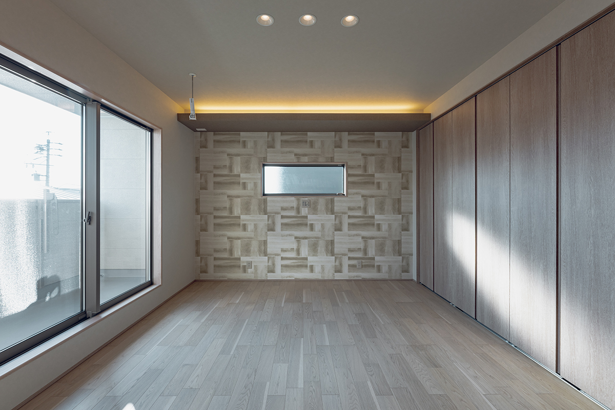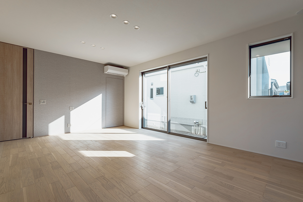 内装のクロスでアクセントをつけたおしゃれなLDK・洋室