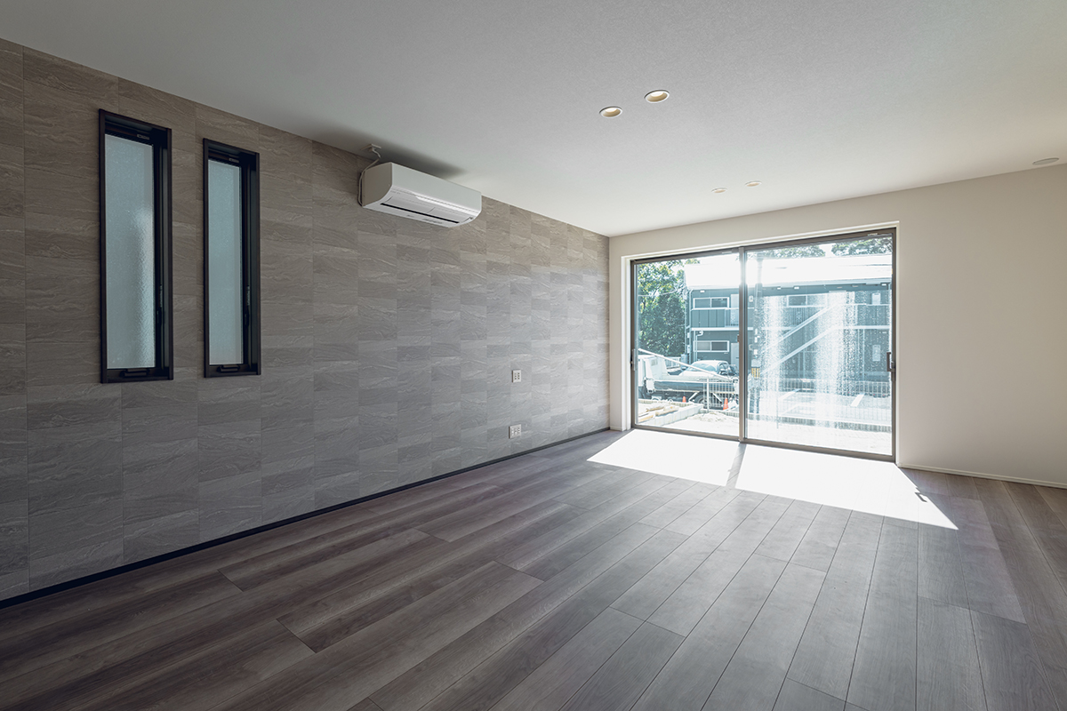 内装のクロスでアクセントをつけたおしゃれなLDK・洋室