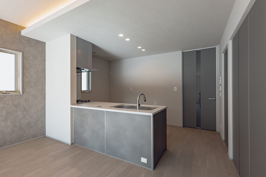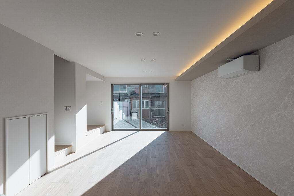 内装のクロスでアクセントをつけたおしゃれなLDK・洋室
