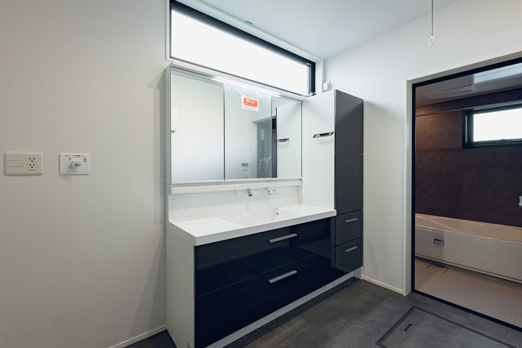 大容量の収納も完備した広々とした洗面化粧台