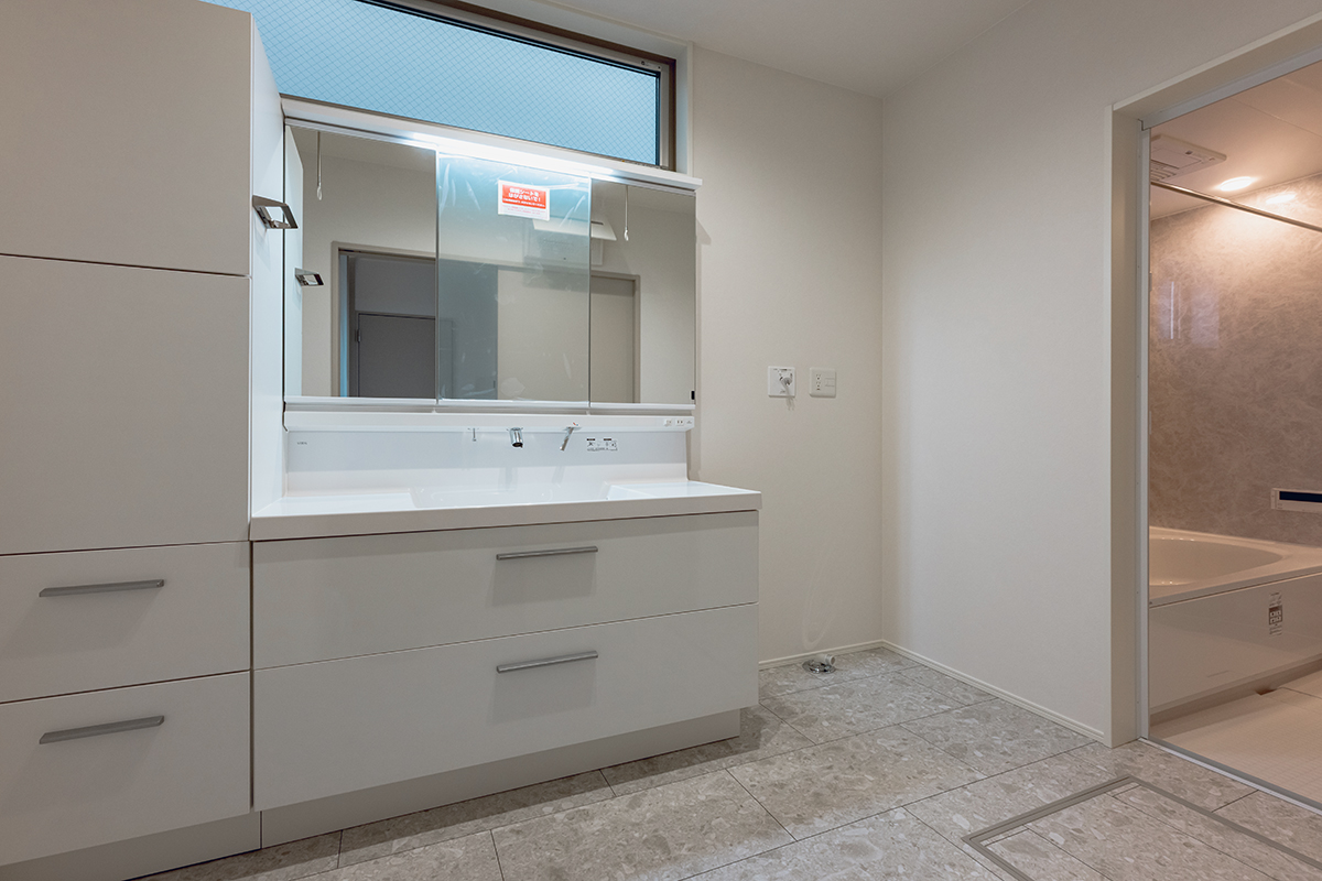大容量の収納も完備した広々とした洗面化粧台