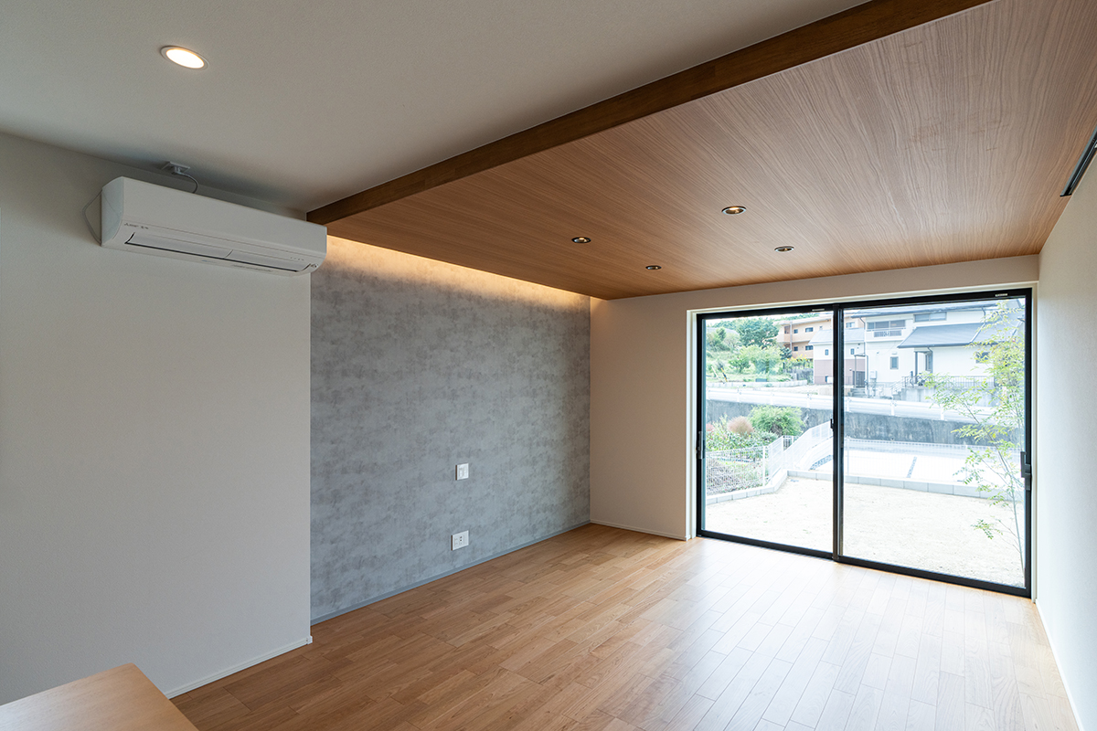 内装のクロスでアクセントをつけたおしゃれなLDK・洋室