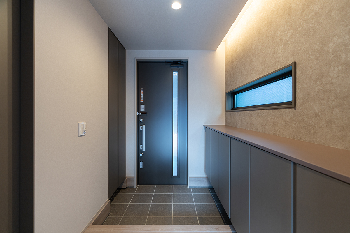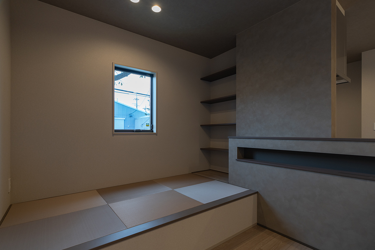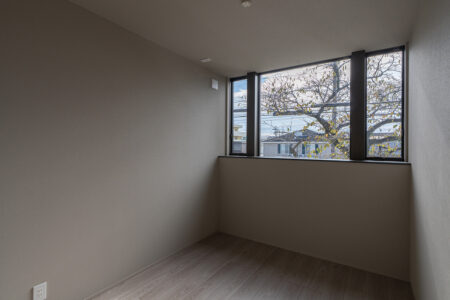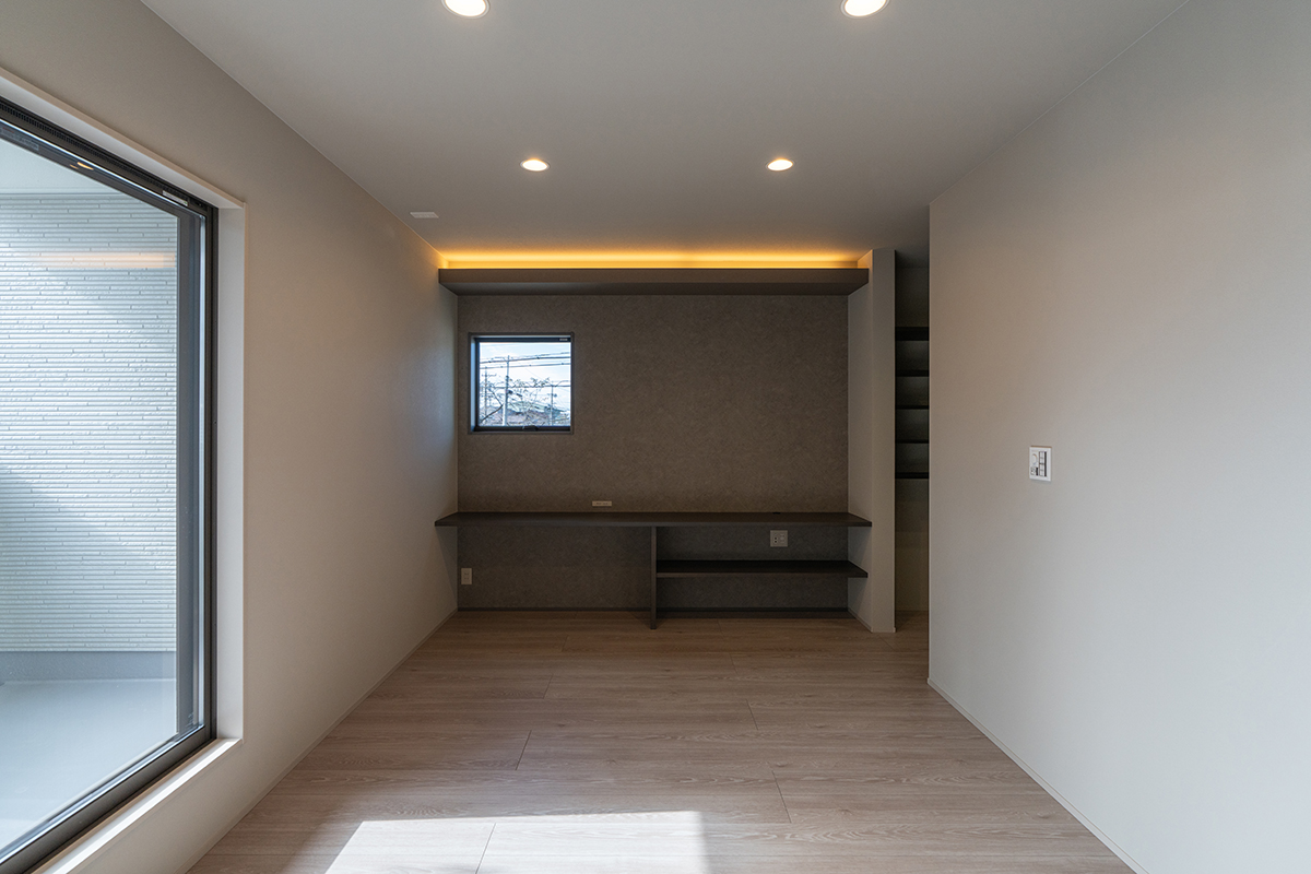 南面に設けたLDKには、家族団らんの空間を楽しめるヌックを計画。建物の南側には桜並木があり、春には桜、秋には紅葉と四季折々の風景を楽しむことができます。また主寝室には、読書やワークスペースにピッタリな造作カウンターを設けました。