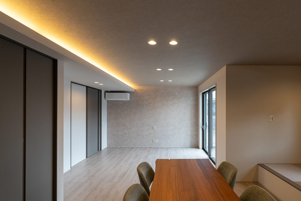 内装のクロスでアクセントをつけたおしゃれなLDK・洋室