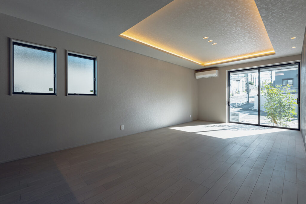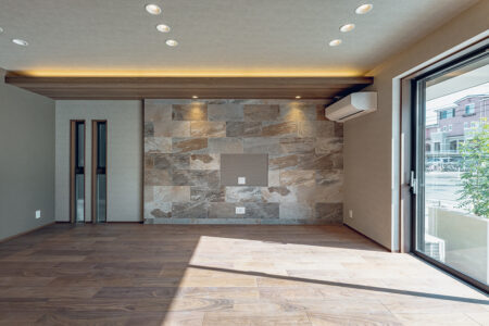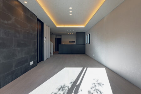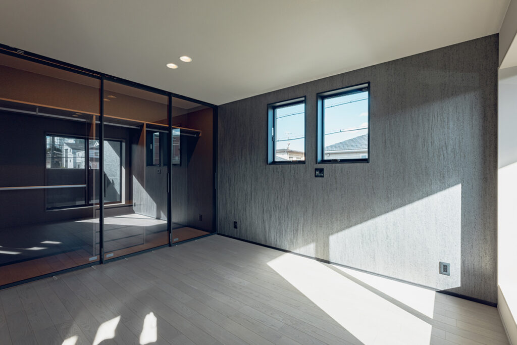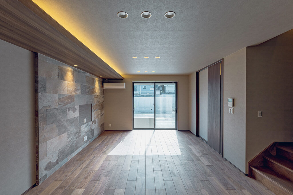内装のクロスでアクセントをつけたおしゃれなLDK・洋室
