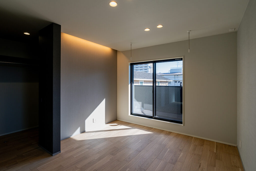内装のクロスでアクセントをつけたおしゃれなLDK・洋室
