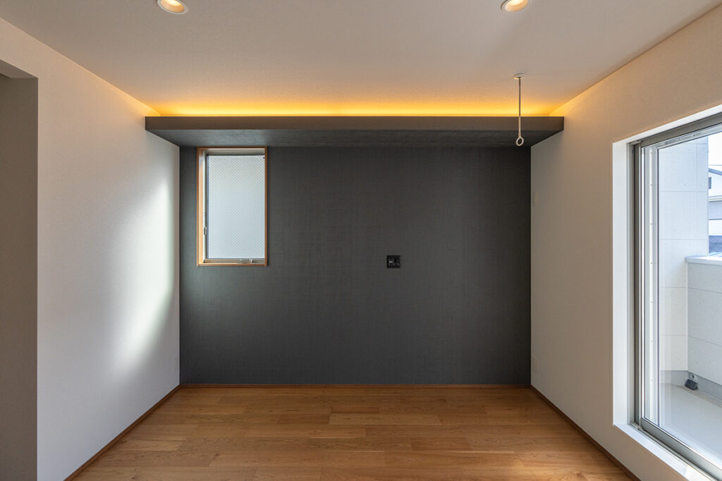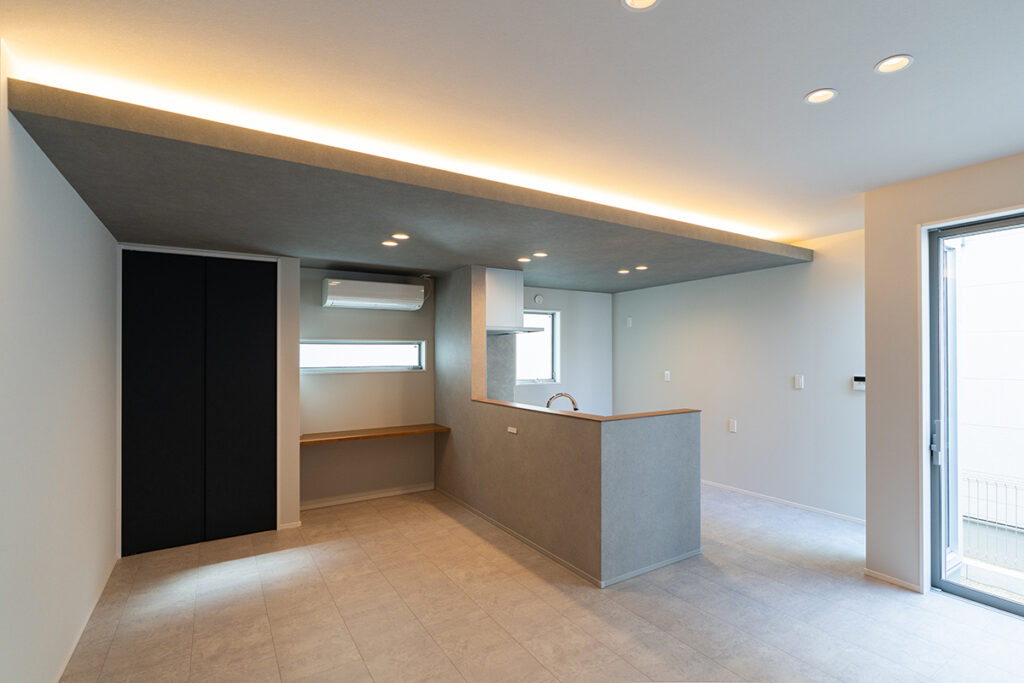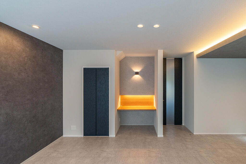 リビングと主寝室に間接照明を設け、優しい光に包まれた寛ぎの空間を演出しました。またリビングの一角に設計したスタディコーナーは、学習や作業スペースとして多目的に活用できます。
