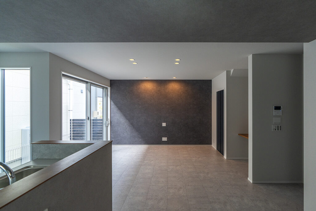 内装のクロスでアクセントをつけたおしゃれなLDK・洋室