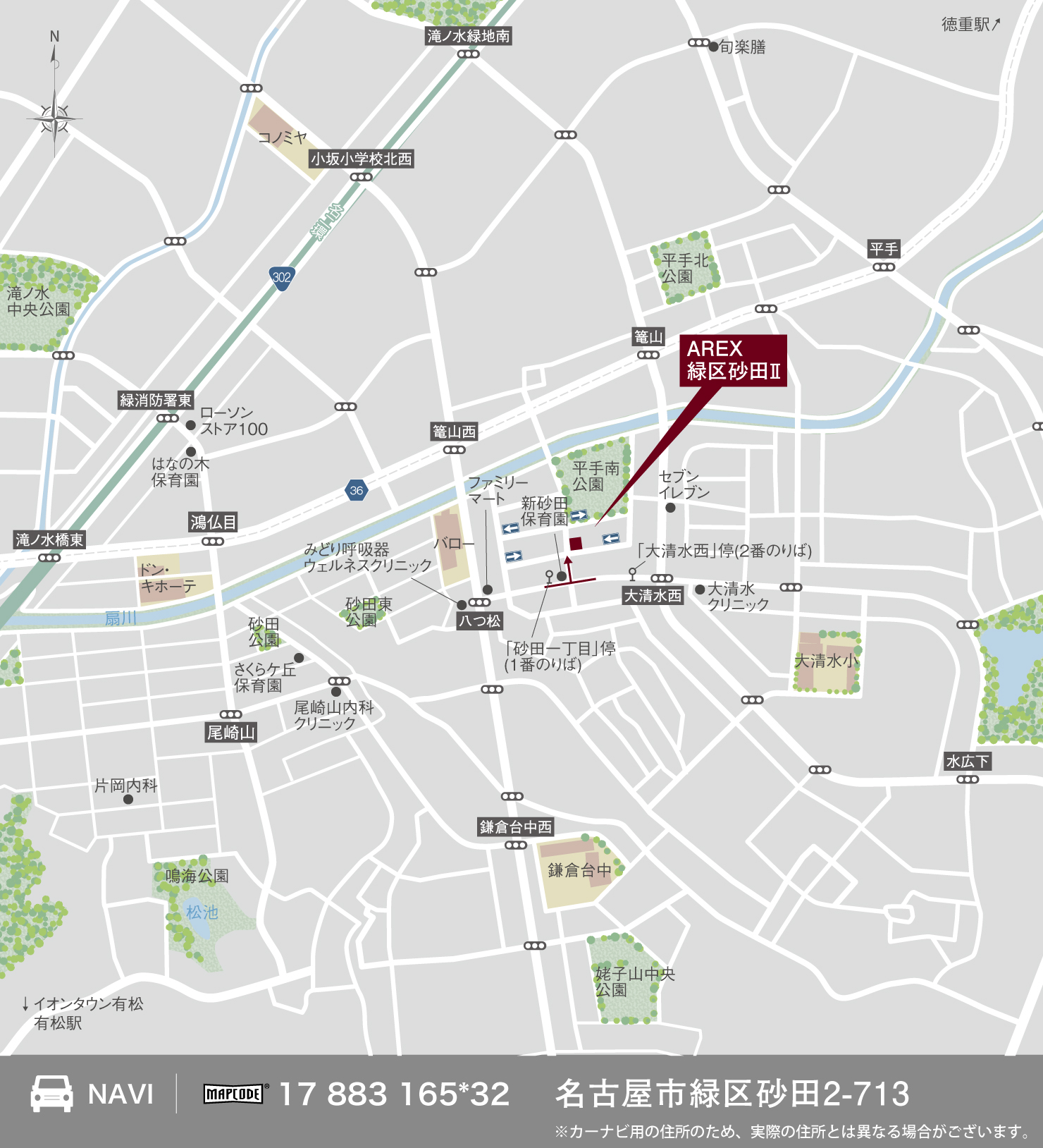 〒458-0807 名古屋市緑区砂田2丁目713番の一部
