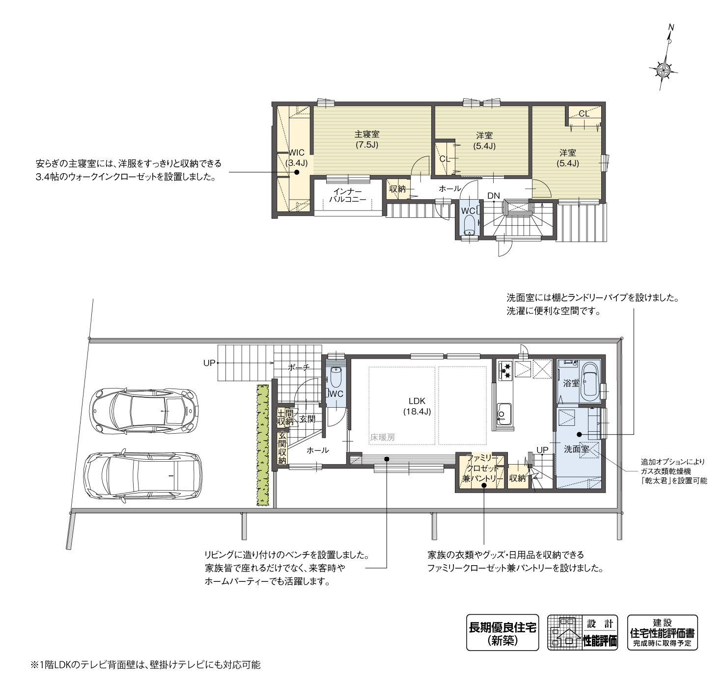 3LDK+WIC+土間収納+ファミリークローゼット兼パントリー