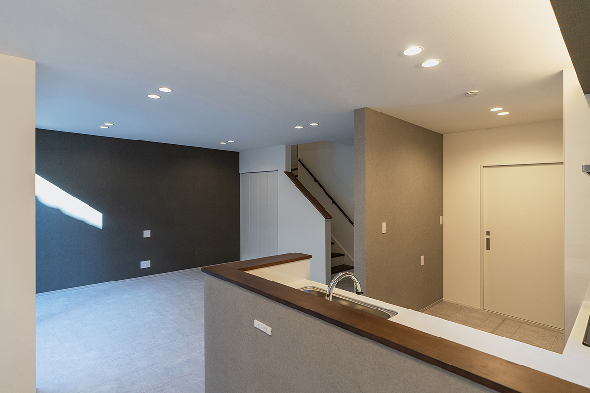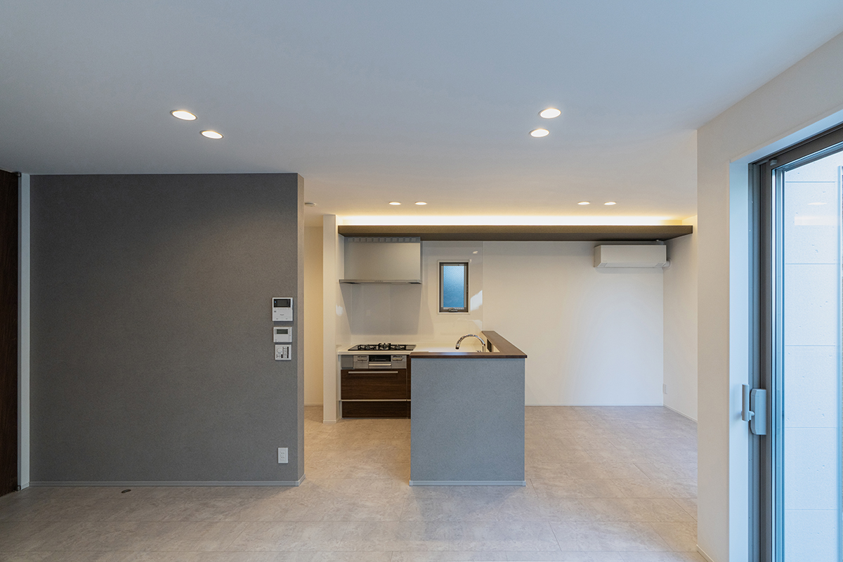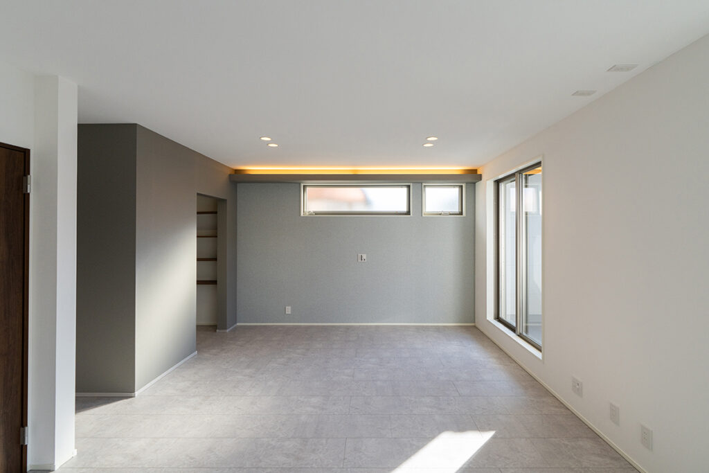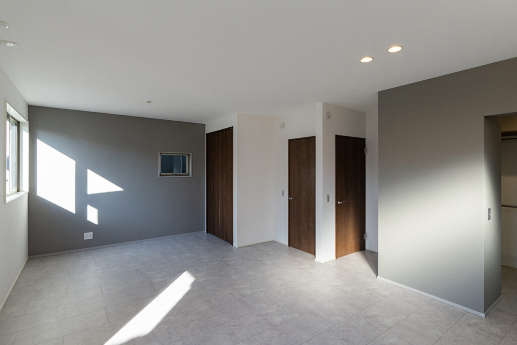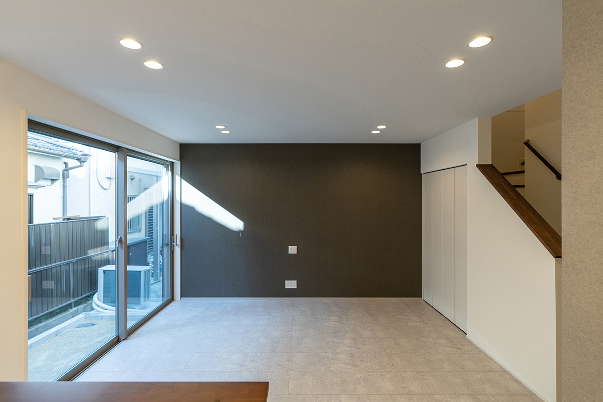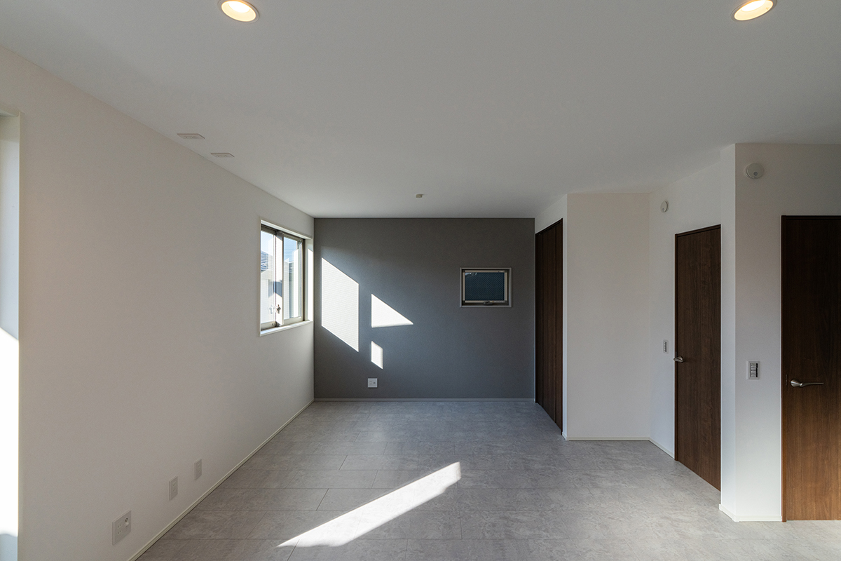 内装のクロスでアクセントをつけたおしゃれなLDK・洋室