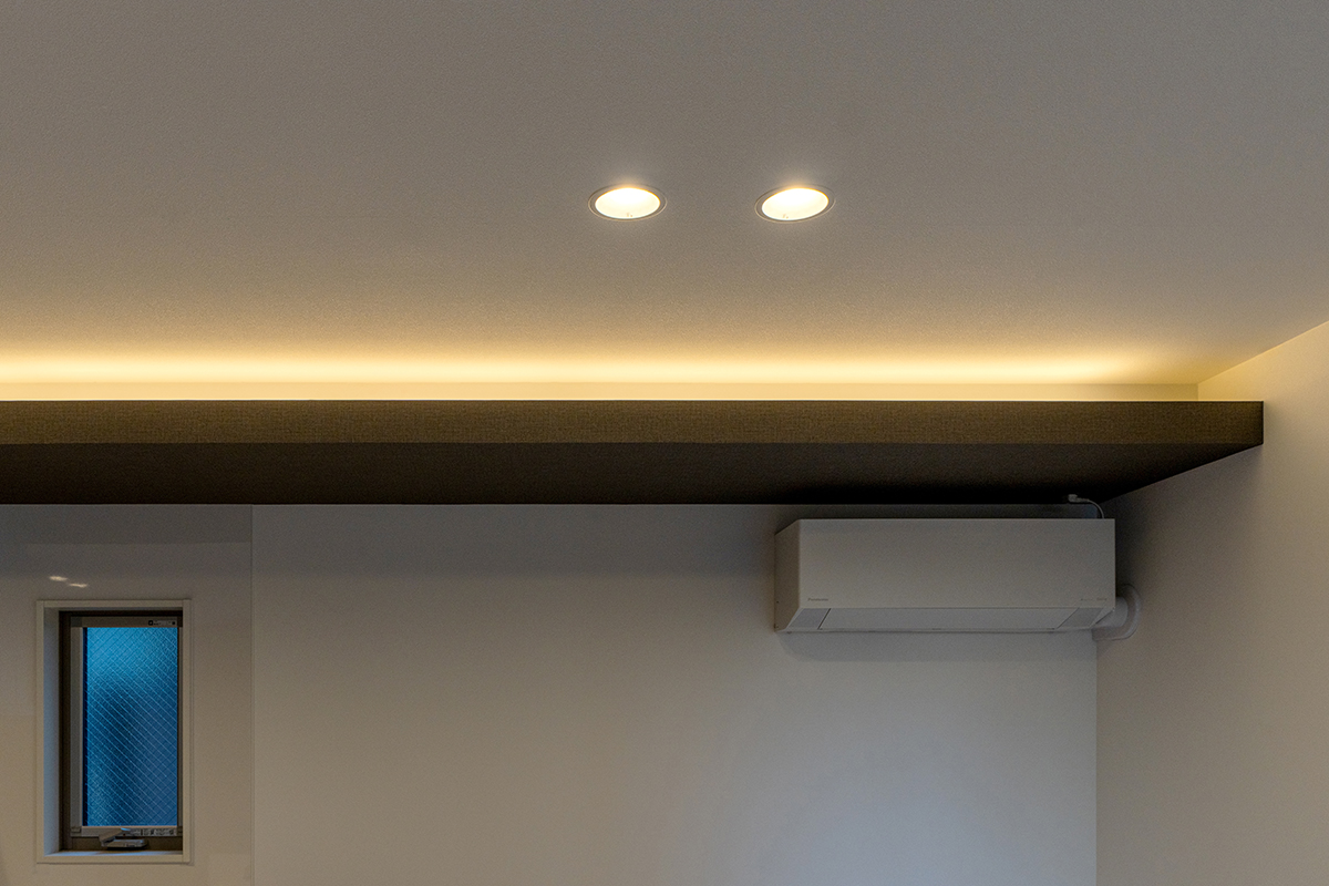 LDK全体の空調として使用できる20帖用のエアコンをリビングに設置 ※メーカーが異なる場合があります