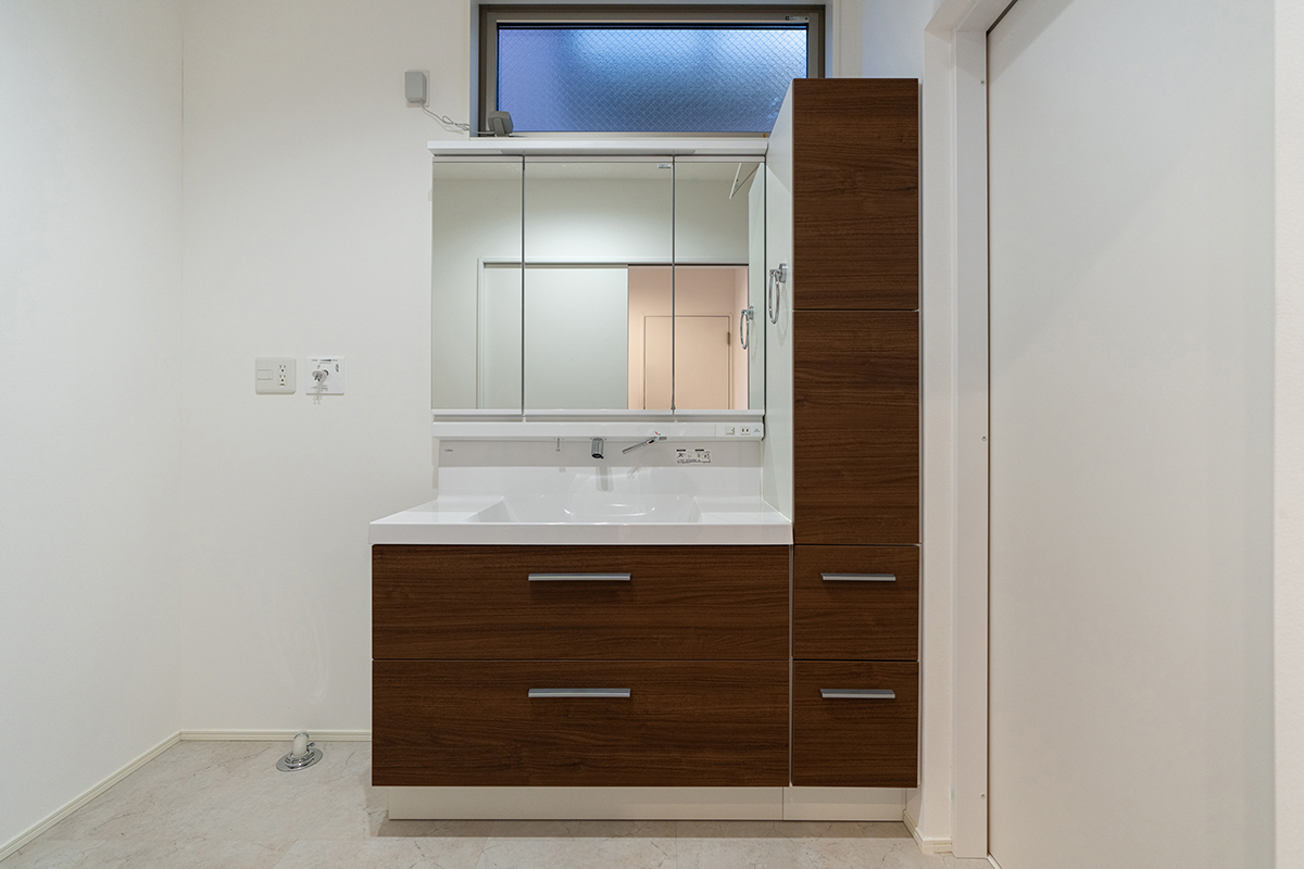 大容量の収納も完備した広々とした洗面化粧台