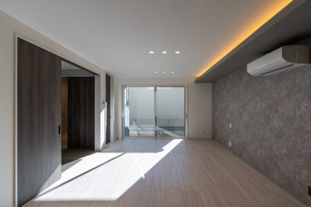 内装のクロスでアクセントをつけたおしゃれなLDK・洋室