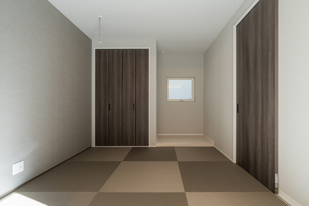 リビングと続き間になっている和室は、ホールからもアクセスが可能。子どもの遊び場や寝室として活用するだけでなく、客間としても活用できます。普段使いにも来客用にも便利な使い勝手の良い間取りです。
