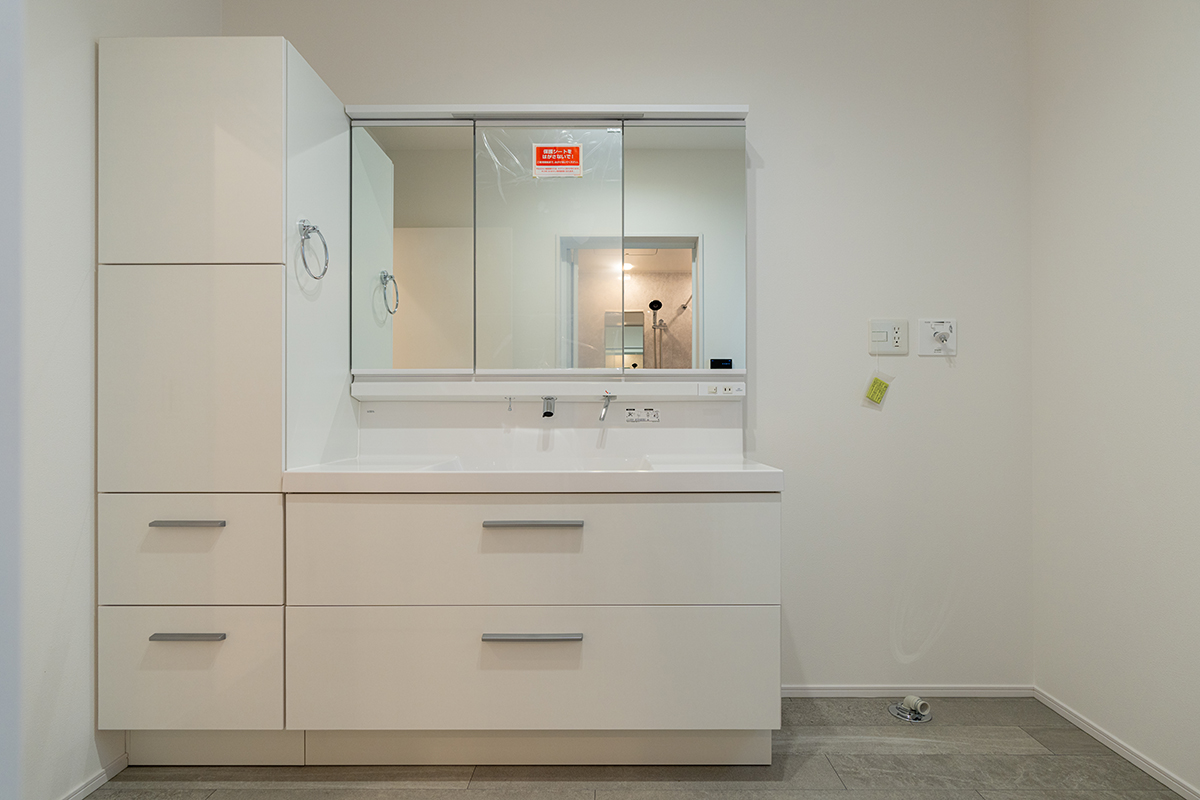大容量の収納も完備した広々とした洗面化粧台