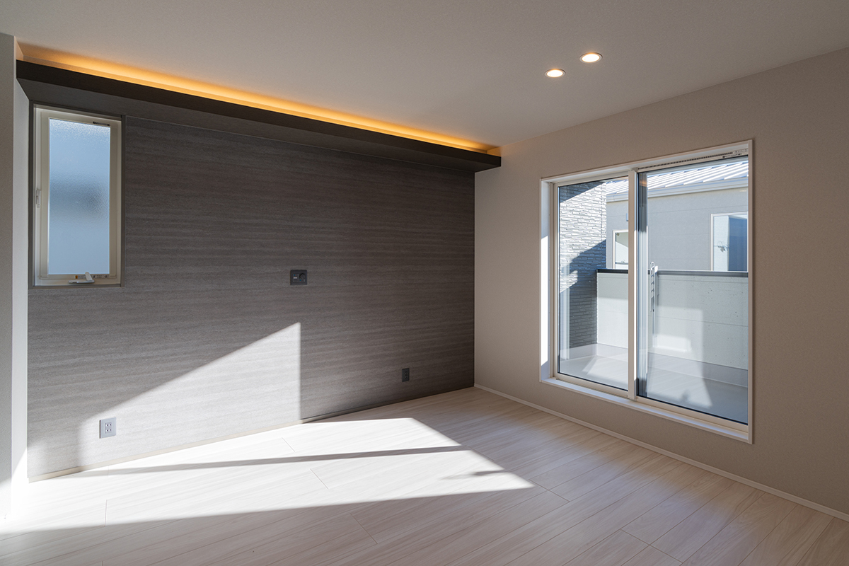 内装のクロスでアクセントをつけたおしゃれなLDK・洋室