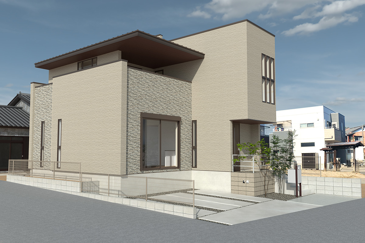 落ち着いた雰囲気と重厚感のある外観が印象的な住まい。和室は置き畳を採用しており、和室としても洋室としても使用できます。また広々としたバルコニーは物干しスペースだけでなく、寛ぎの屋外テラスとしても活用できます。