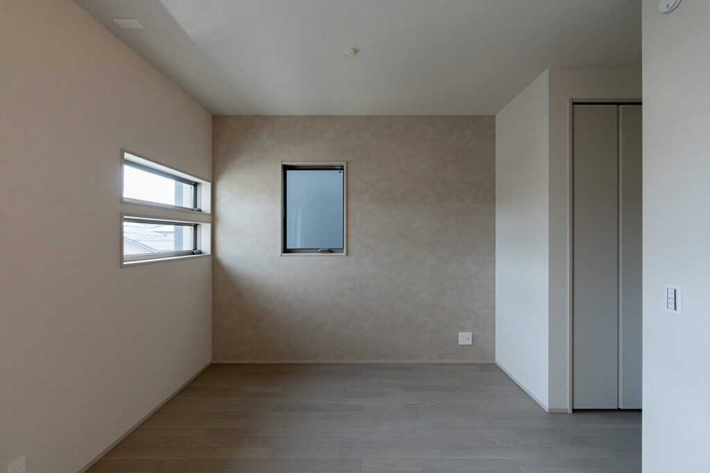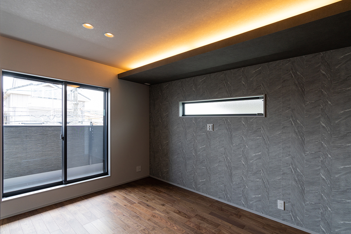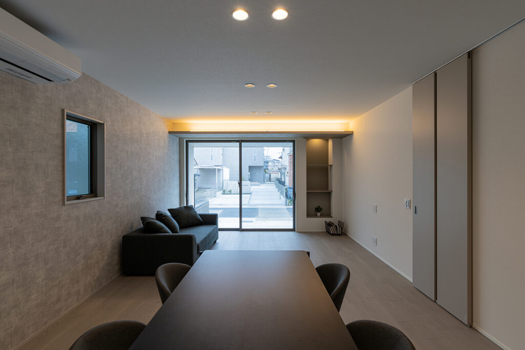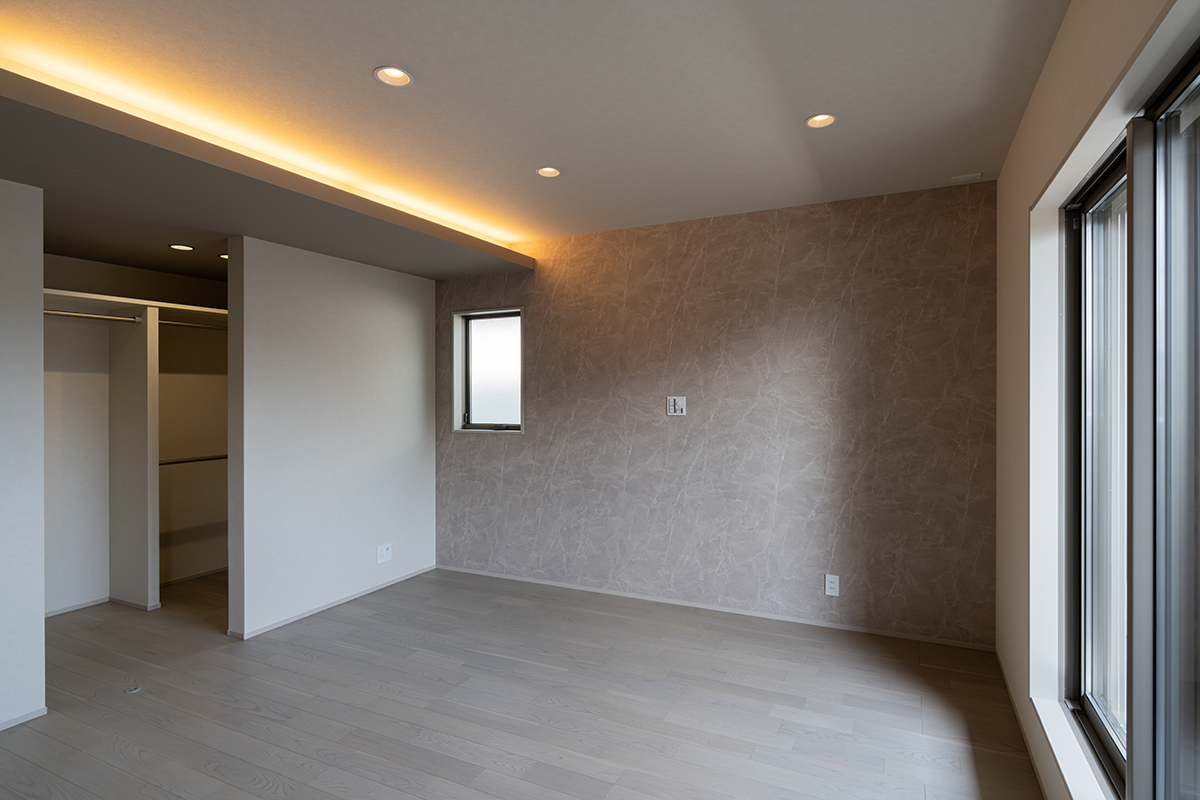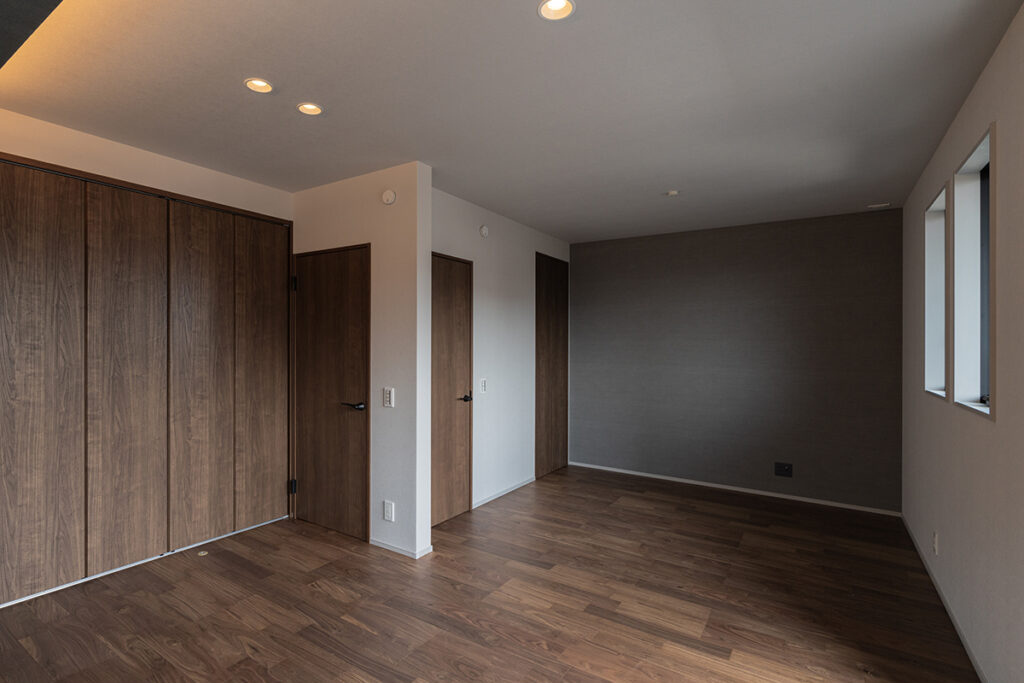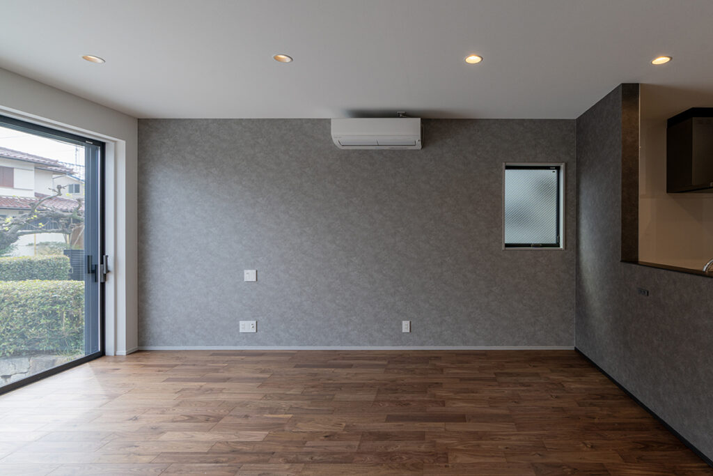 内装のクロスでアクセントをつけたおしゃれなLDK・洋室