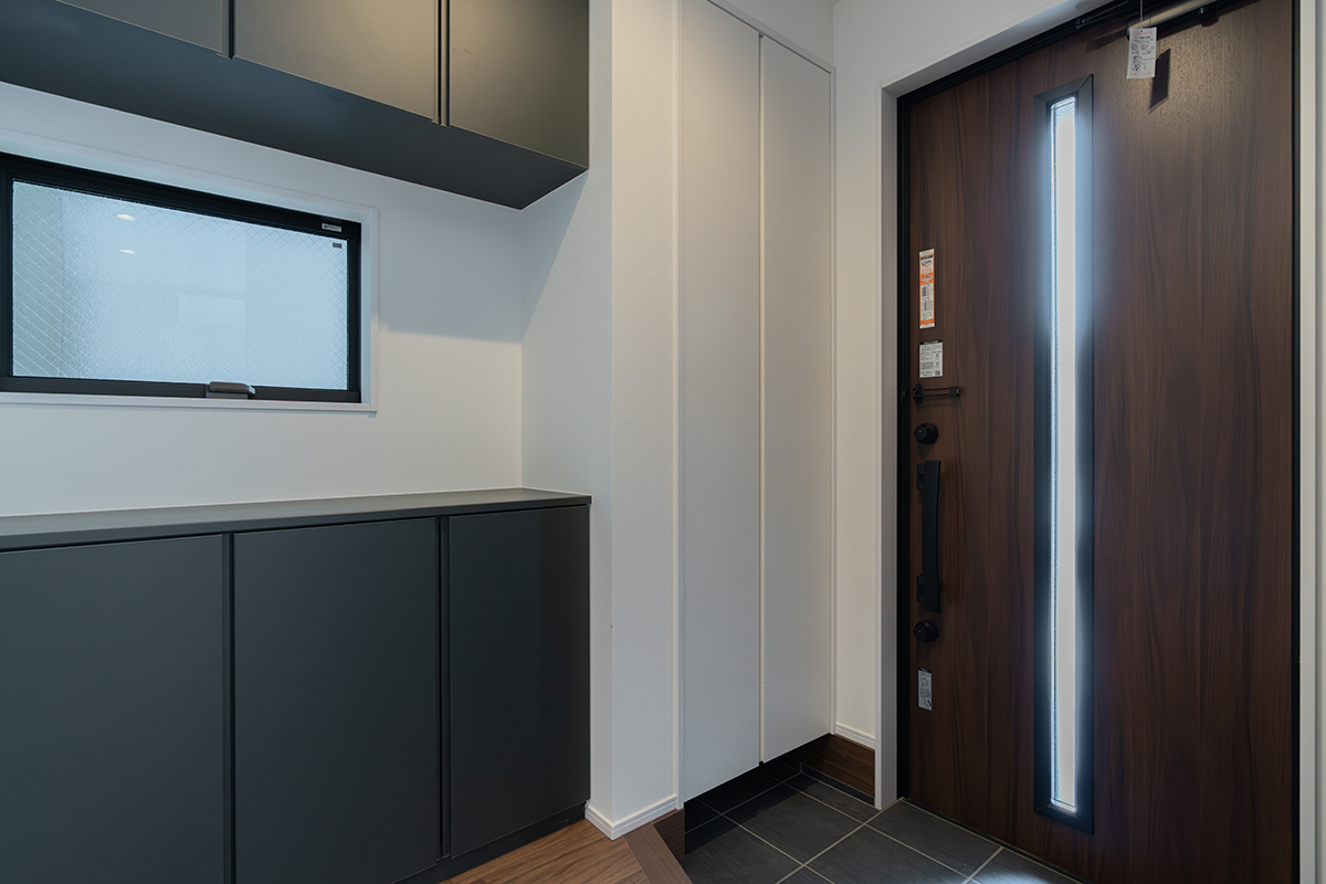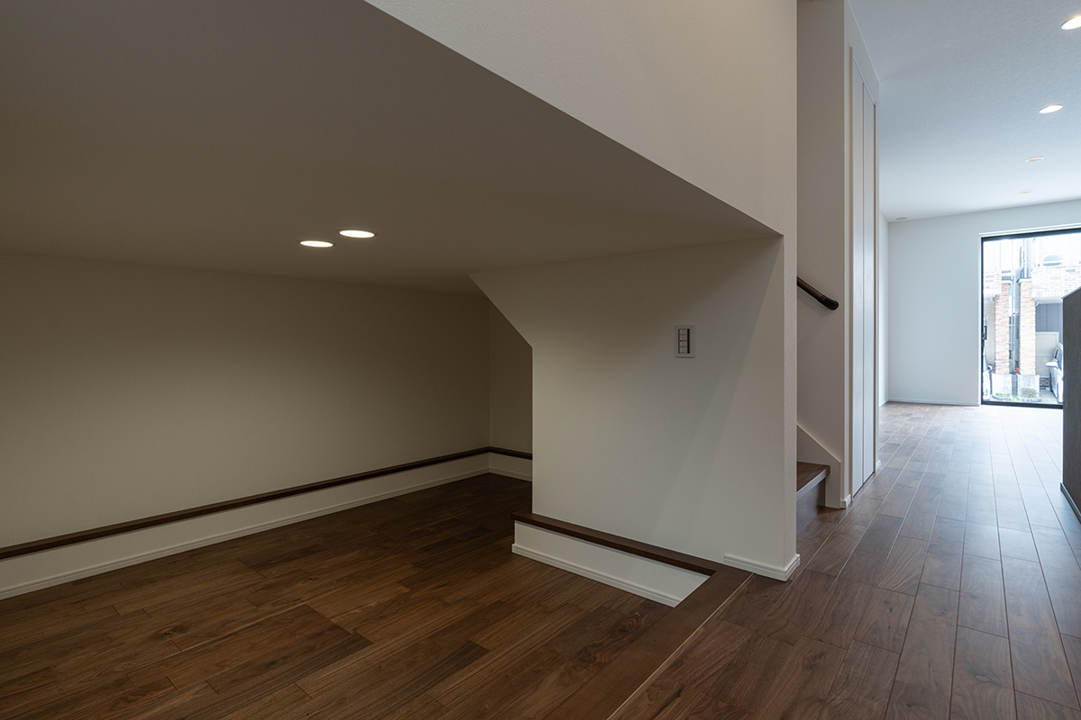 「豊かな暮らしができる家」は、大型のストックコーナーと中二階のホビーコーナーが特徴的な住まい。水廻り近くのストックコーナーは、家事動線や使い勝手に大きく貢献します。また洗面室に付属させたランドリーコーナーは、パントリーからもアクセスが可能。回遊性を持たせ、生活動線に配慮しました。