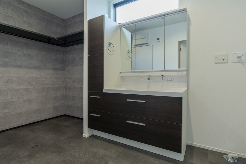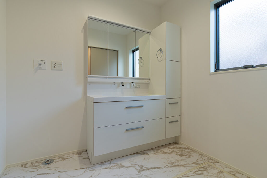 大容量の収納も完備した広々とした洗面化粧台