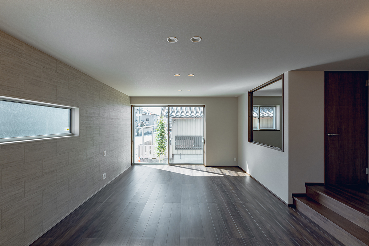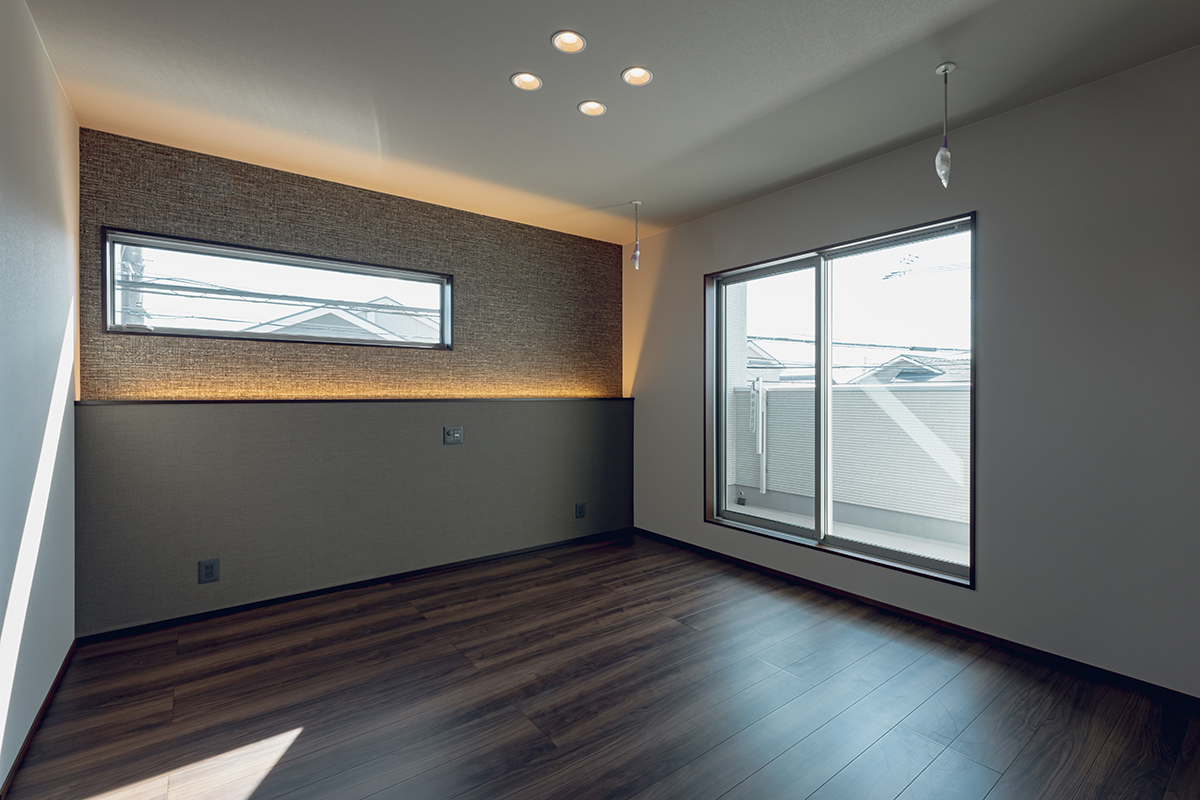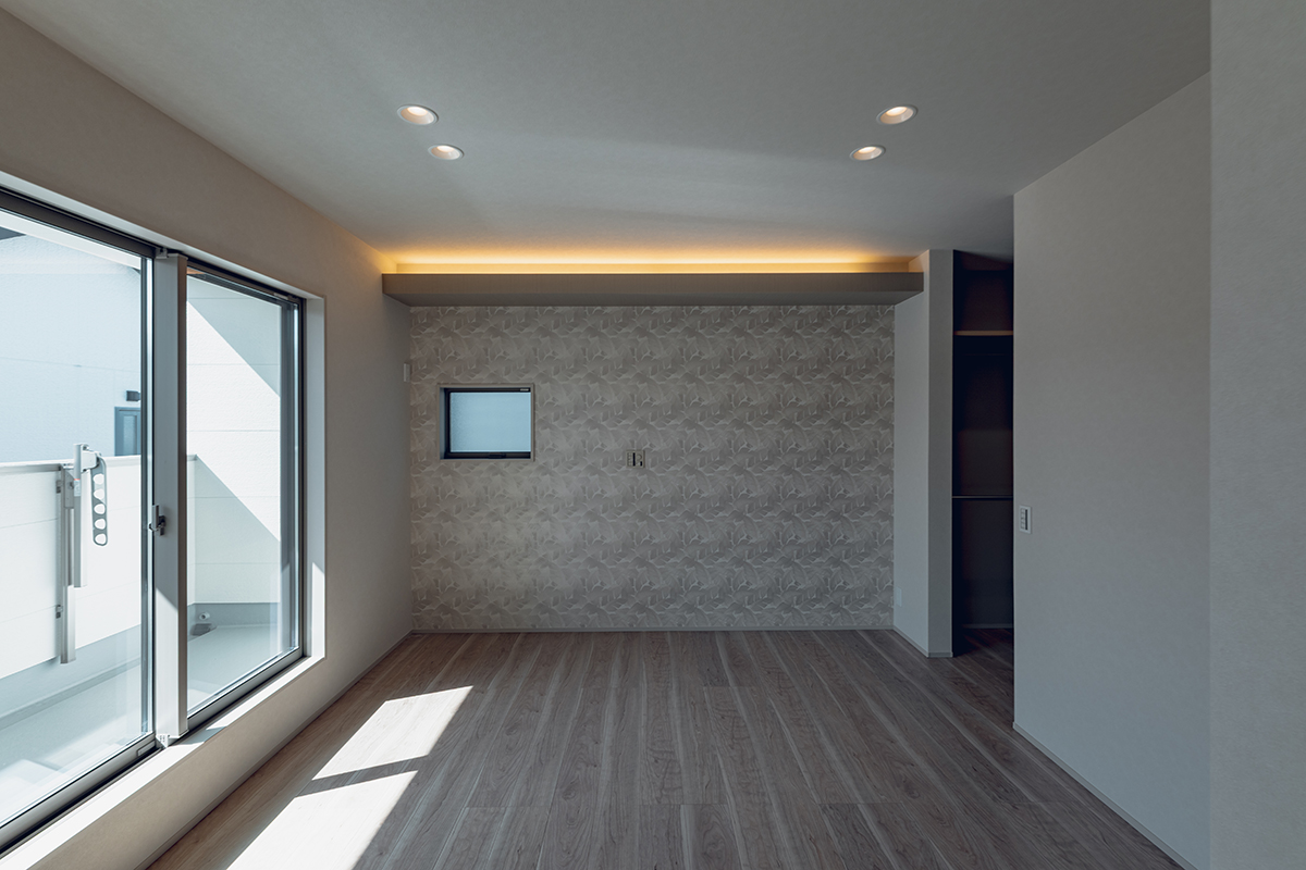 内装のクロスでアクセントをつけたおしゃれなLDK・洋室
