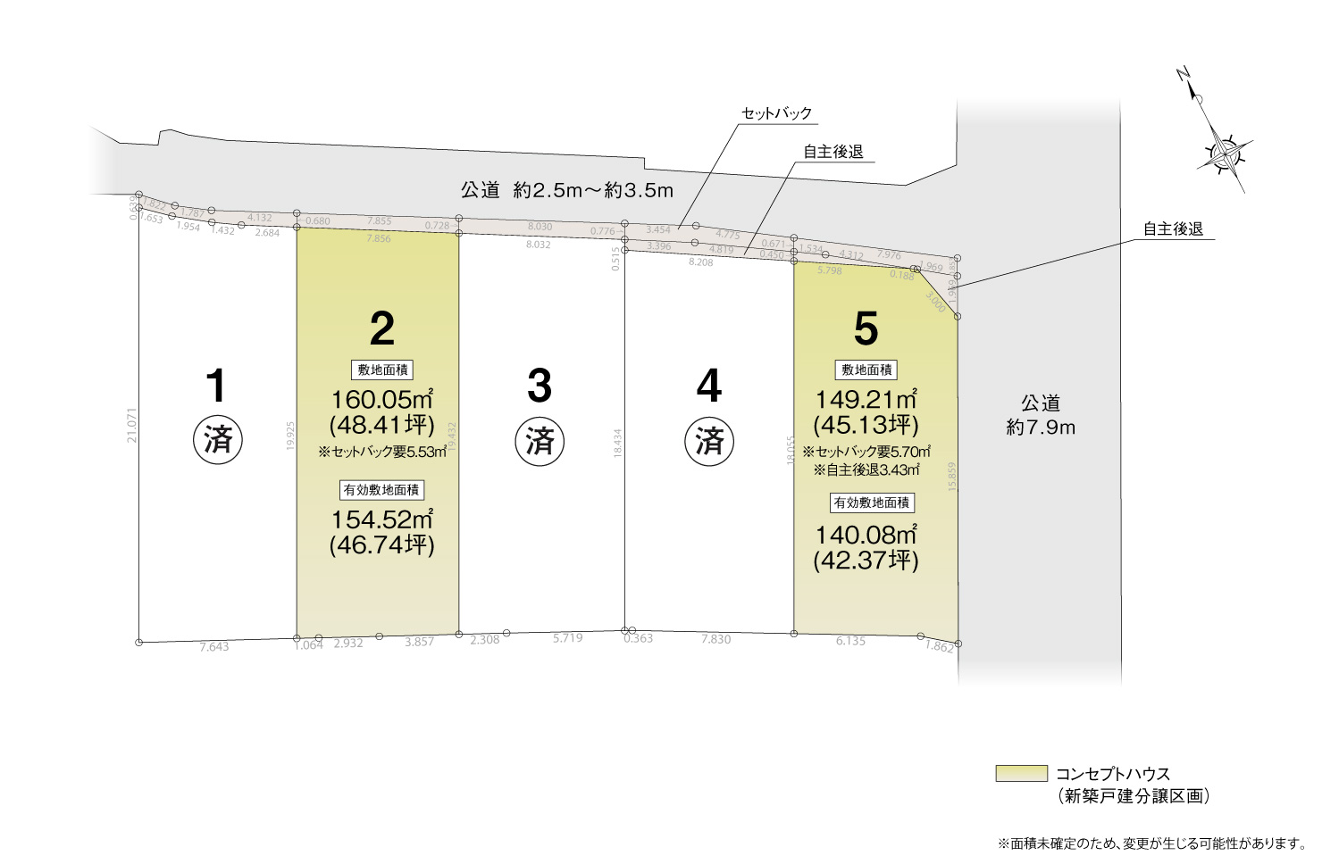 ※セットバック要 2区画:5.53㎡、5区画:5.70㎡