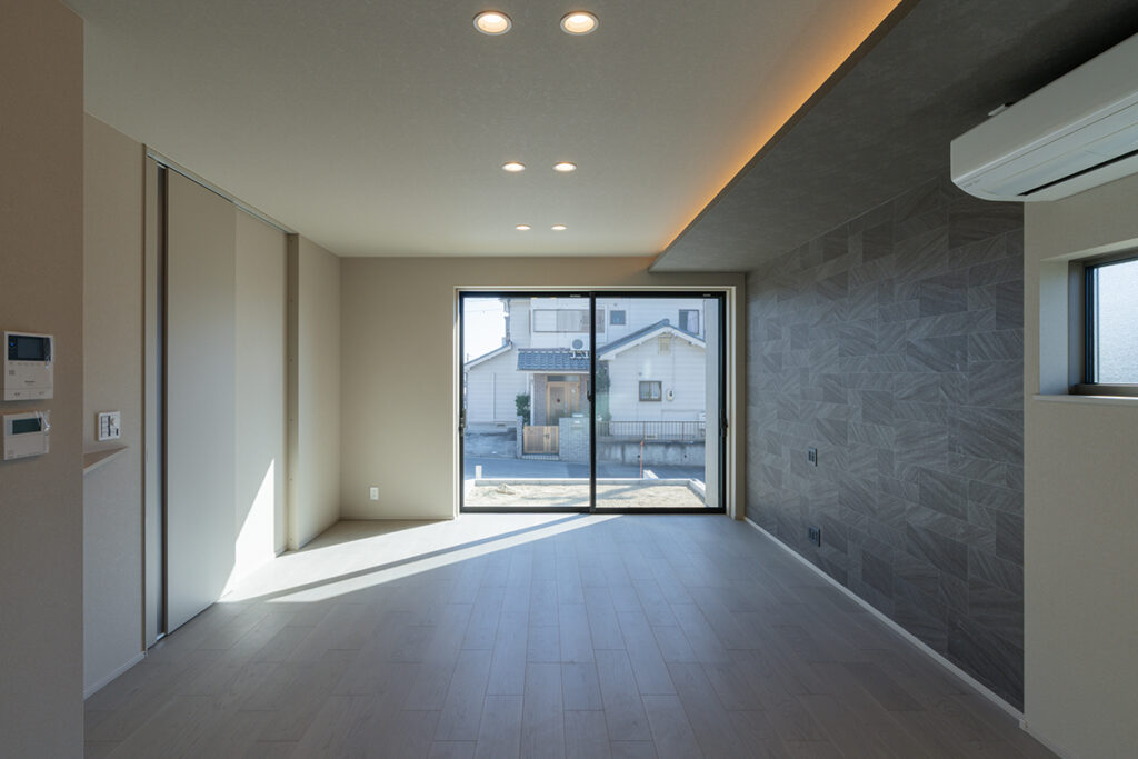 内装のクロスでアクセントをつけたおしゃれなLDK・洋室