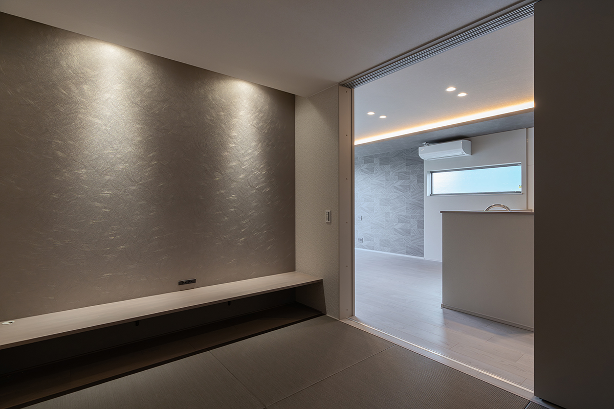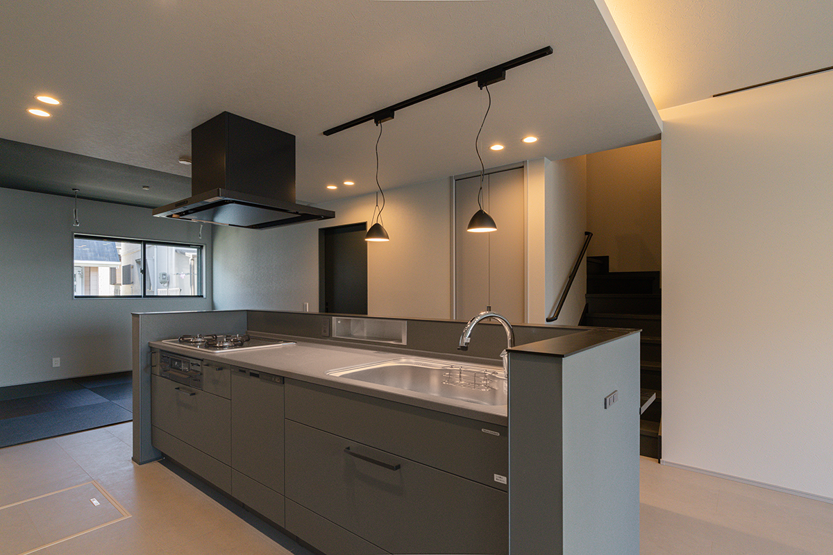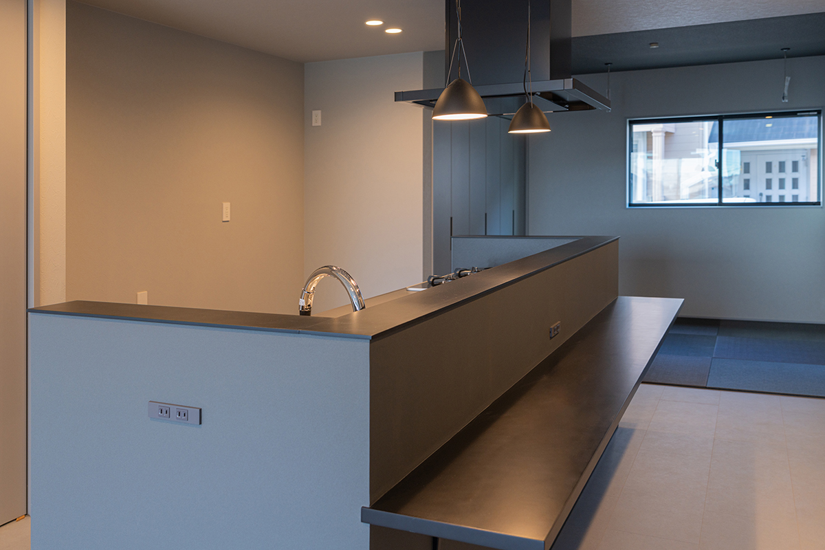 カフェのようなカウンターキッチンを住まいの中心に計画しました。家族や友人とコミュニケーションを楽しんだり、子どもの勉強スペースとして活用するなど、多用途に使える空間となっています。