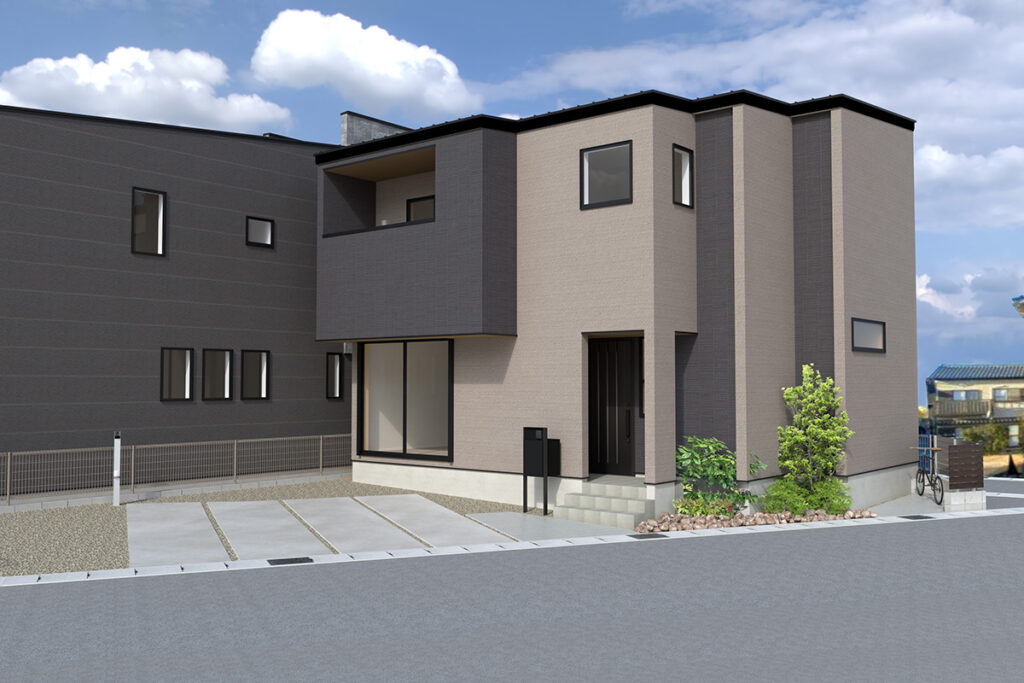 名鉄名古屋本線「富士松」駅まで徒歩約17分。周辺には緑豊かな公園が多く、閑静な住宅街です。AREXの建築家がデザインしたコンセプトハウス全6邸、ただいま建築中です。