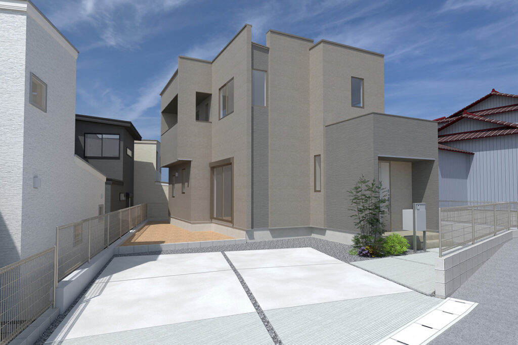 愛知環状鉄道「北野桝塚」駅まで徒歩約18分。保育園や小学校が近く、生活利便施設も近隣に揃った子育て家族に嬉しい住環境です。AREXの建築家がデザインしたコンセプトハウス1邸、ただいま建築中です。