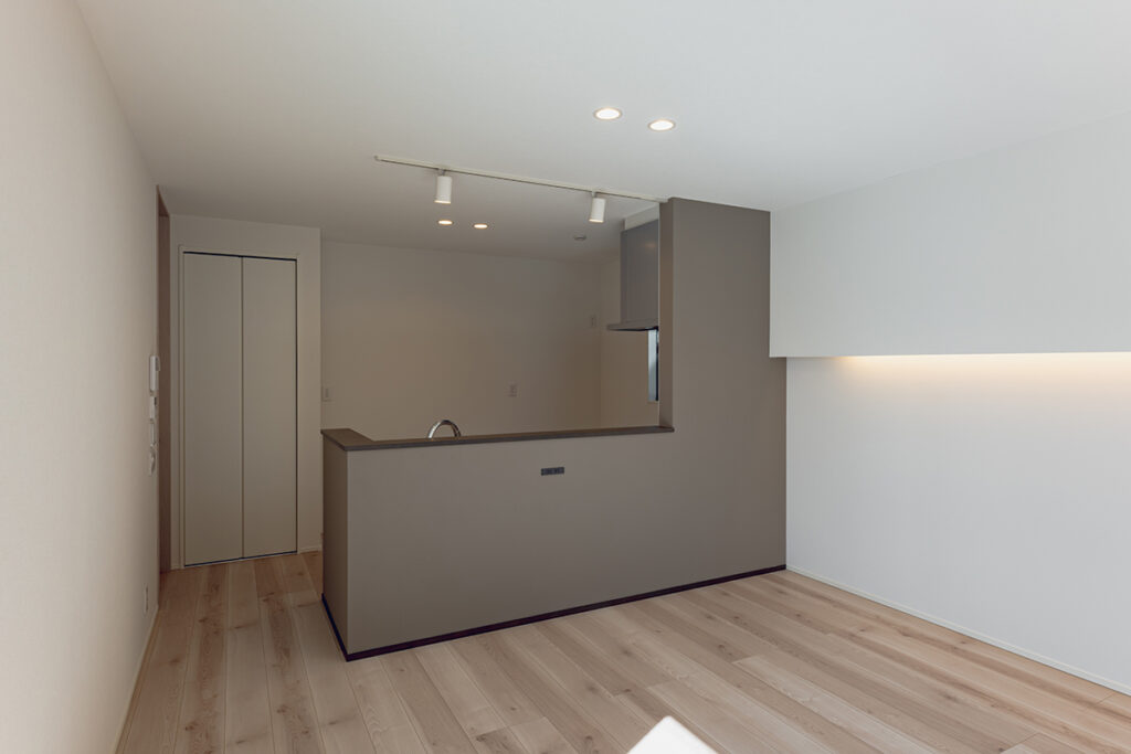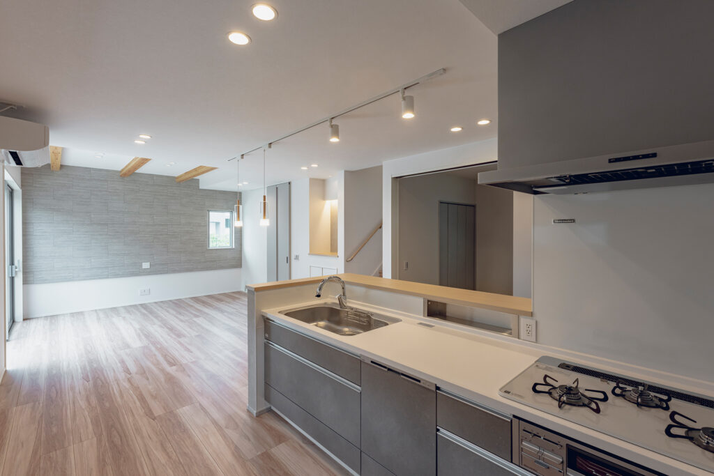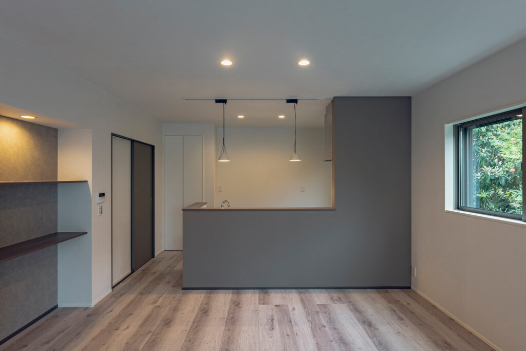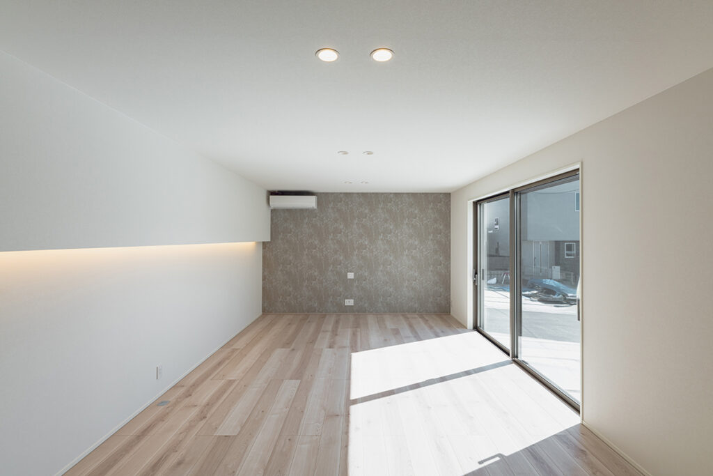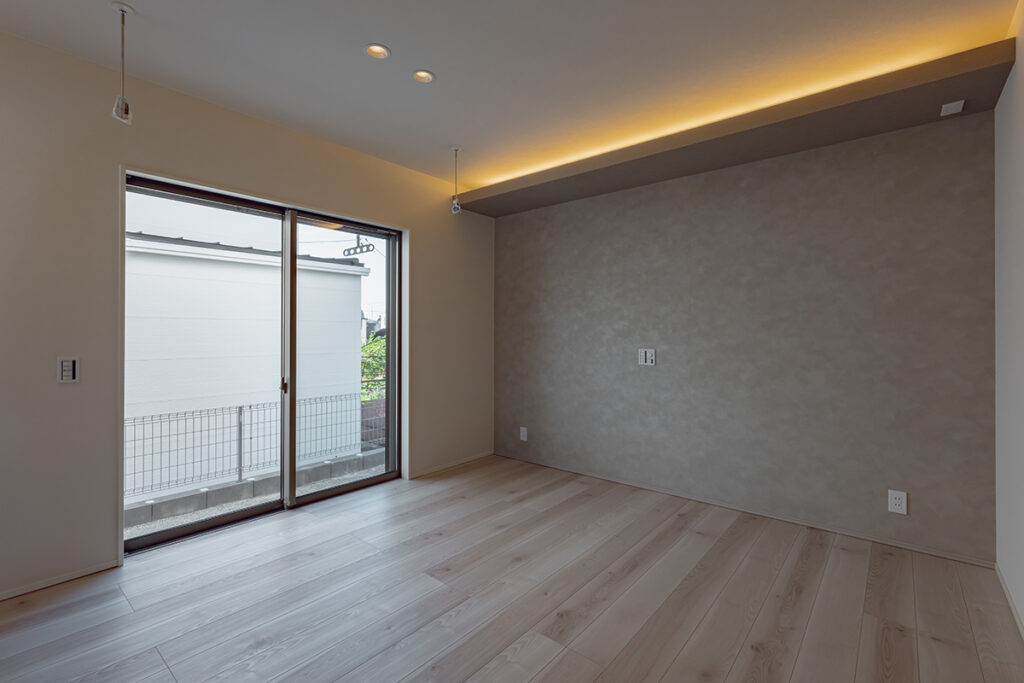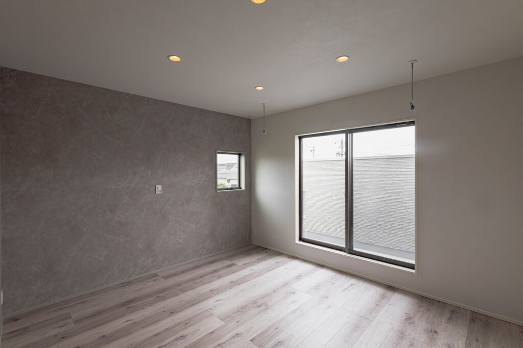 内装のクロスでアクセントをつけたおしゃれなLDK・洋室