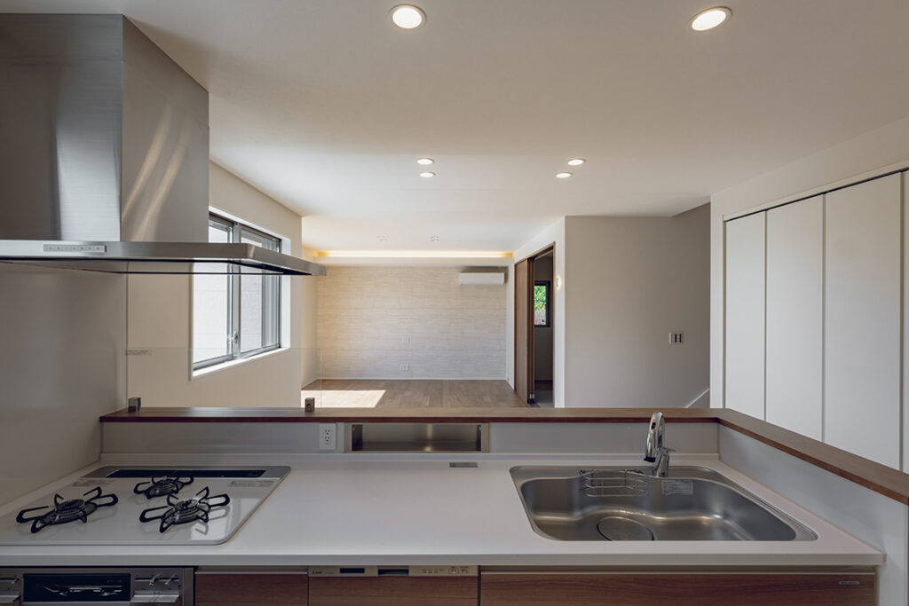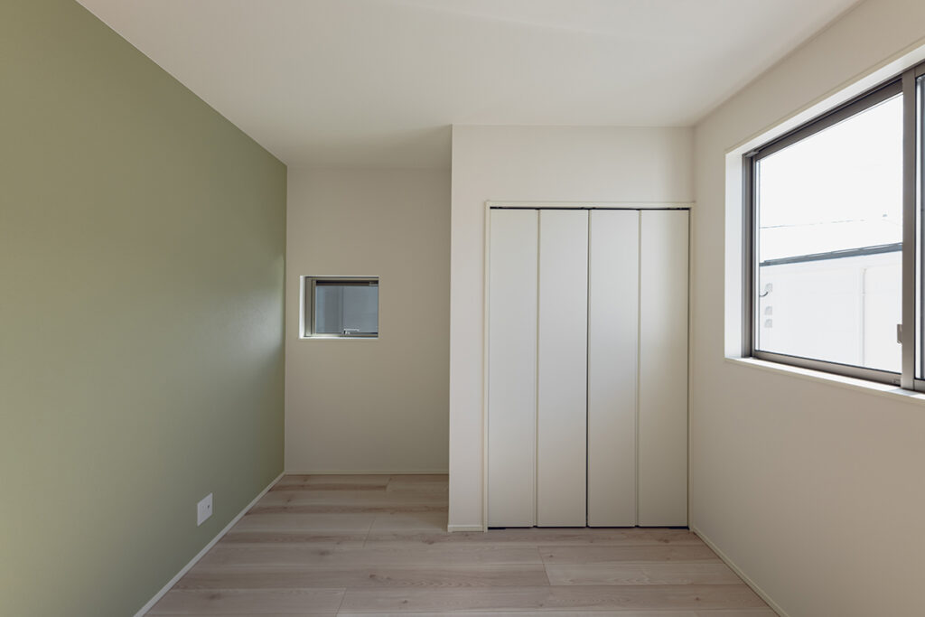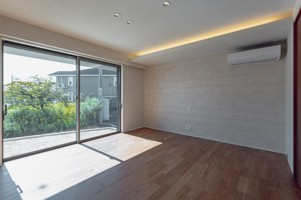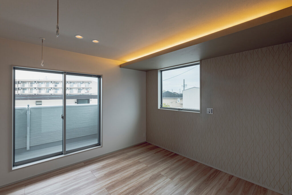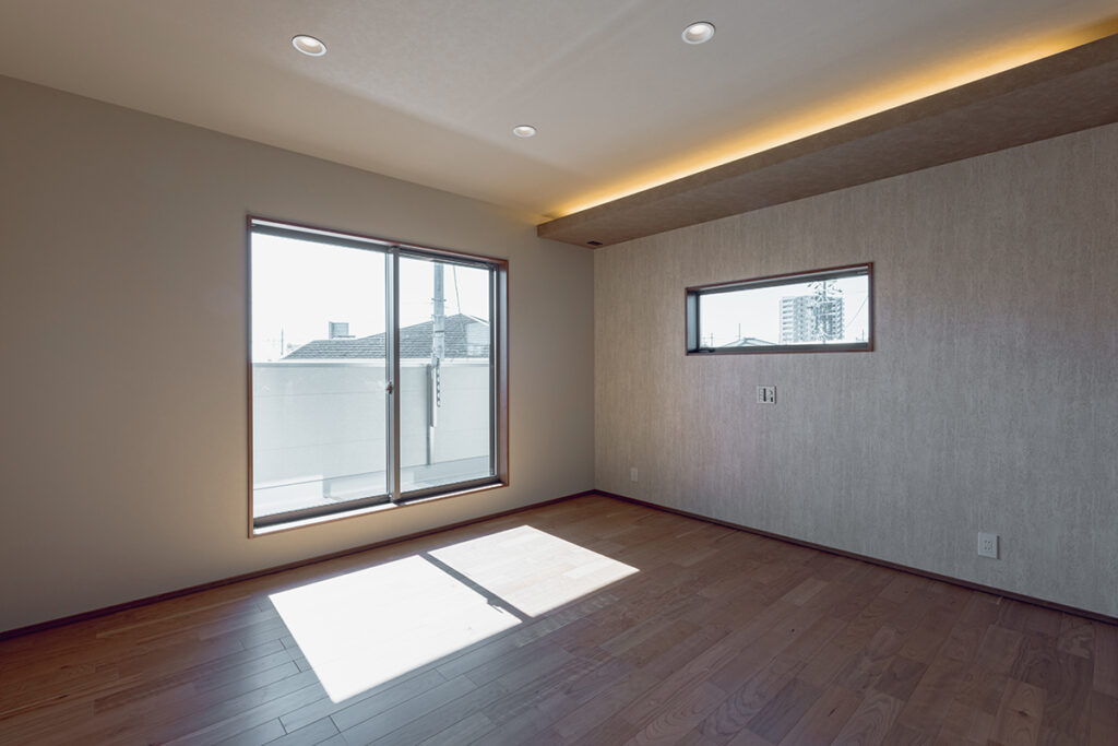 続き間の和室をリビングに隣接して配置し、リビング空間の延長として多目的に活用できる工夫を施しました。また、2階の全居室は南向きとなっているため、明るく暖かい空間で快適に過ごすことができます。