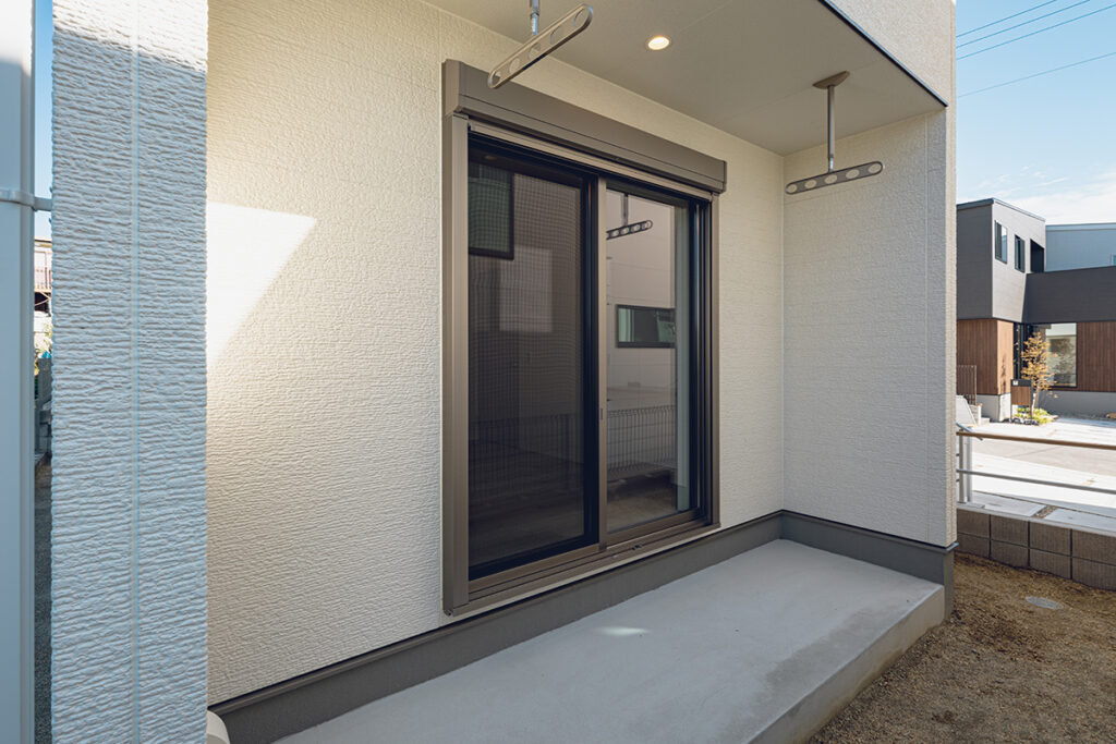 1階で家事が完結する、平屋のような暮らしが叶う住まいです。主寝室、物干しスペース、ウォークインクローゼットを1階に配置しているため、干した洗濯物をそのままクローゼットに収納することが可能。家事の負担が軽減するだけでなく、老後も安心して暮らせます。