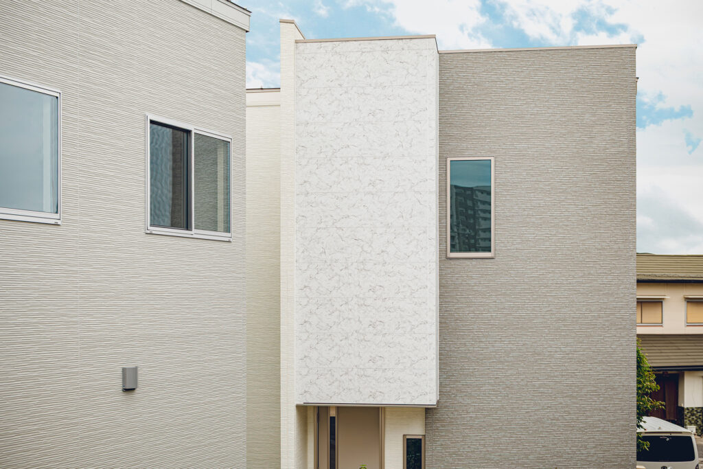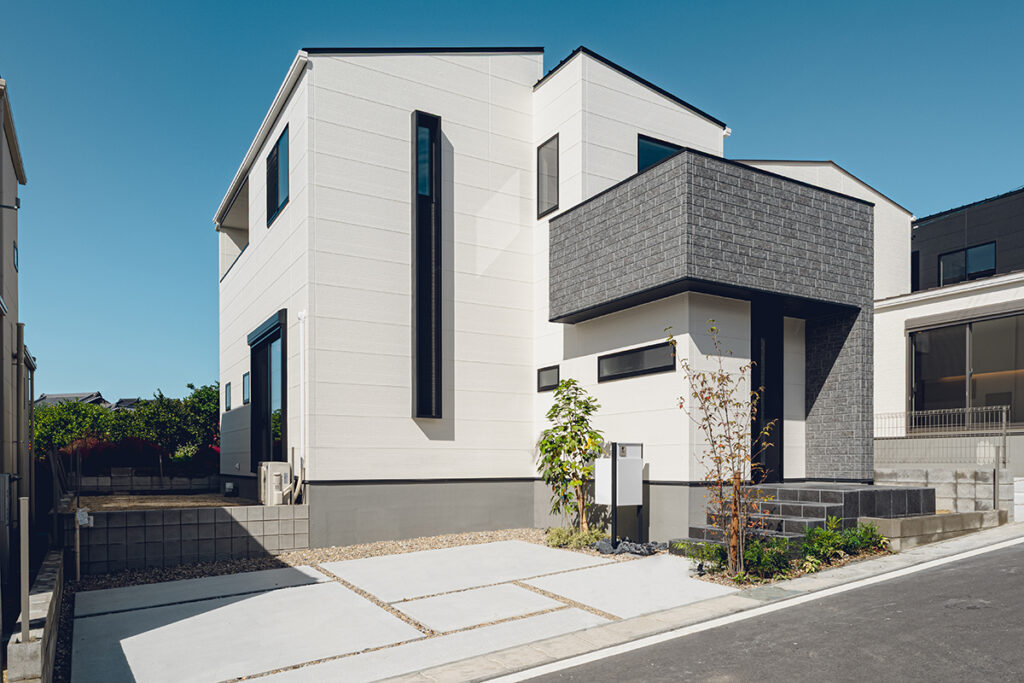 名鉄名古屋本線「牛田」駅まで徒歩約7分。保育園や小学校、緑豊かな公園も近く、子育て家族に嬉しい住環境です。AREXの建築家がデザインしたコンセプトハウス5邸、堂々完成です。