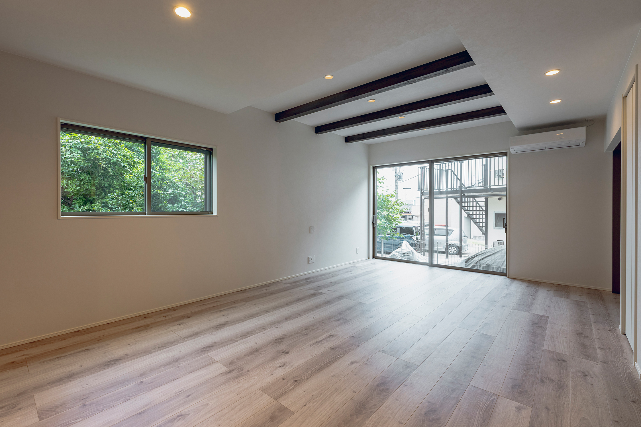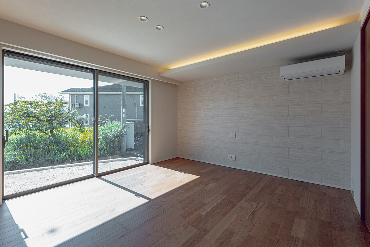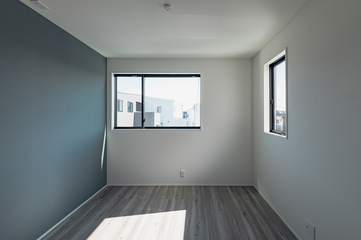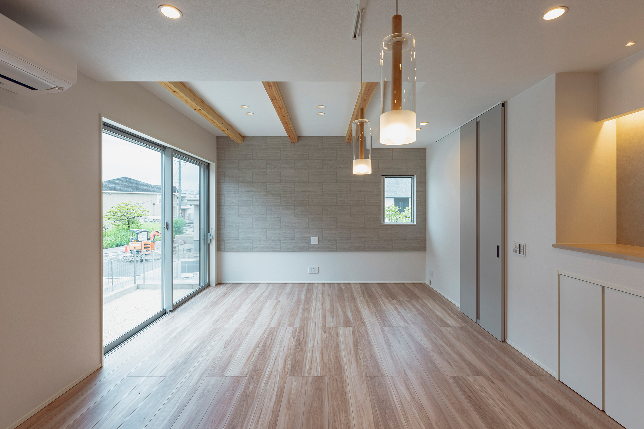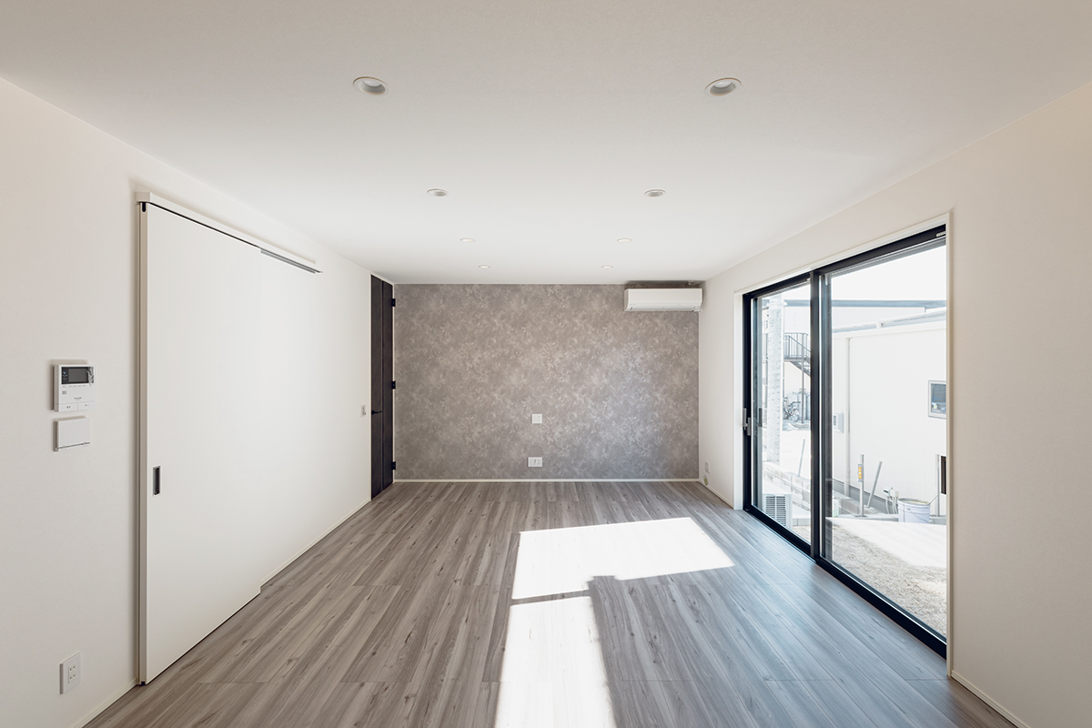 内装のクロスでアクセントをつけたおしゃれなLDK・洋室
