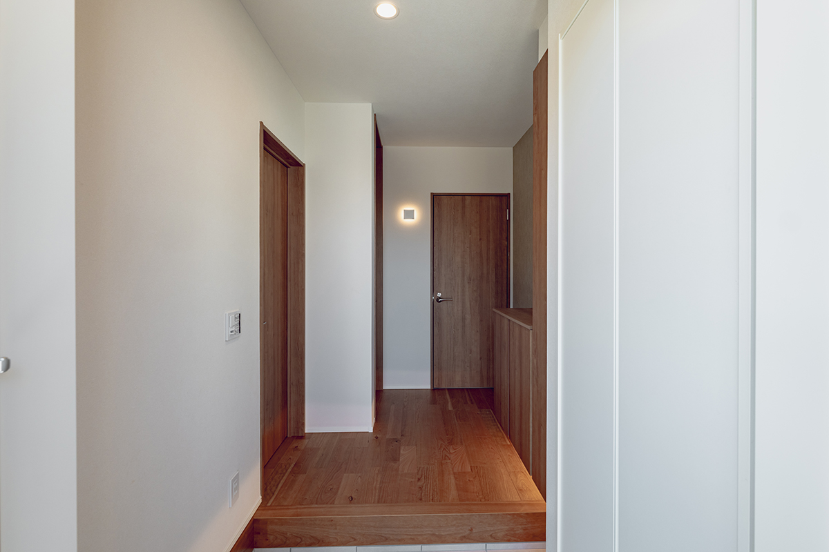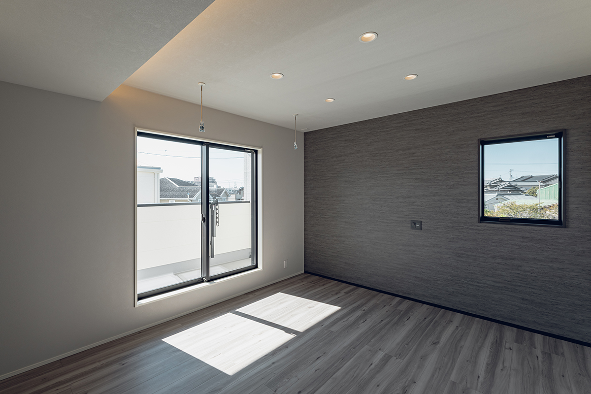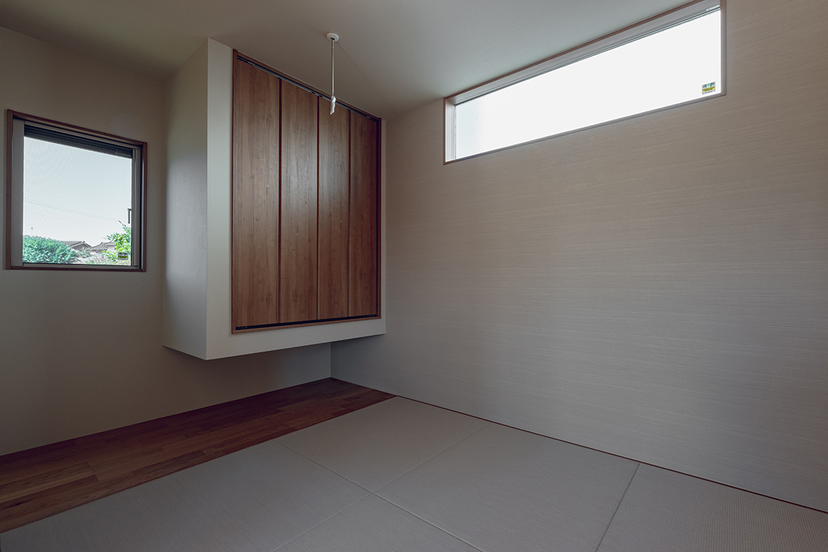 続き間の和室をリビングに隣接して配置し、リビング空間の延長として多目的に活用できる工夫を施しました。また、2階の全居室は南向きとなっているため、明るく暖かい空間で快適に過ごすことができます。